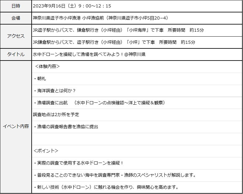 海のお仕事体験プロジェクト こどもわーく特別企画子ども達が海の環境問題「磯焼けの調査」に挑戦!「水中ドローンを操縦して漁場を調べてみよう!@神奈川県」開催