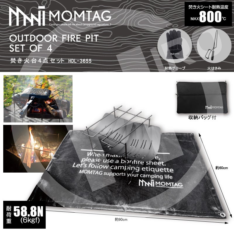 アウトドアブランド【MOMTAG】焚き火台4点セット HDL-3655