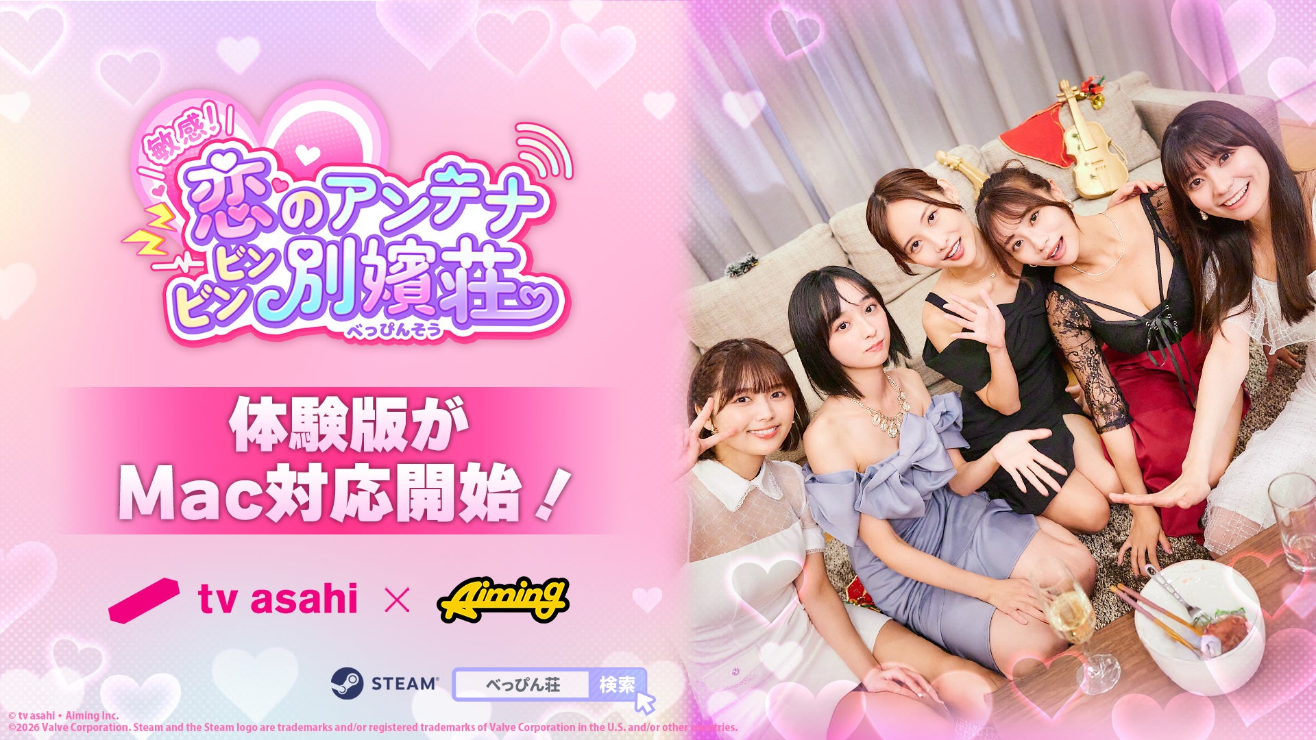 株式会社テレビ朝日は株式会社Aimingと共同制作の実写恋愛シミュレーションゲーム『敏感!恋のアンテナ ビンビン別嬪荘』(略称、『べっぴん荘』)において、Steam Nextフェスへの参加と、製品版の価格が決定したことをお知らせいたします。