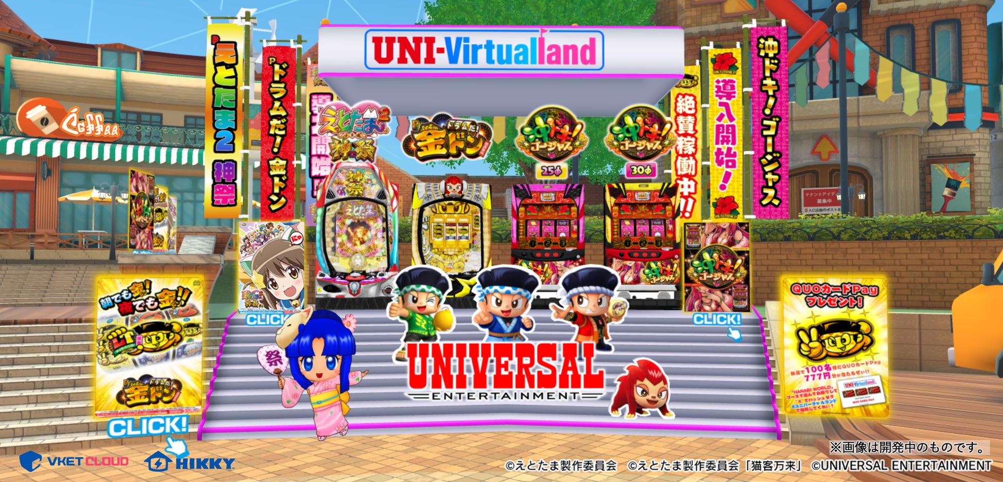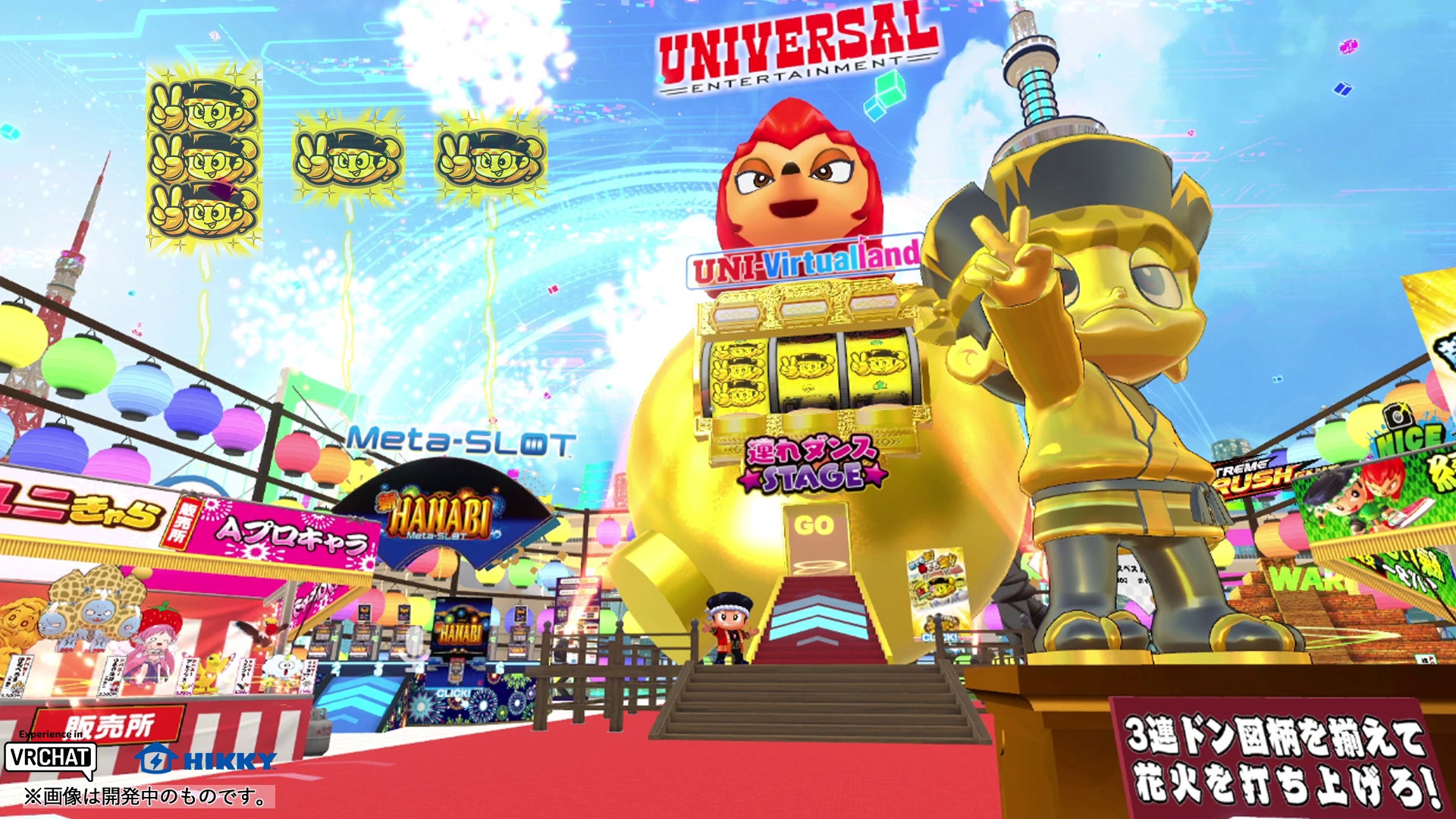 Vket期間中は、スマートフォンなど様々なデバイスから手軽にアクセスできるVket Cloud会場のエントランスにも、ユニバーサルエンターテインメントブースを展開!好評稼働中のパチンコ「Pドラムだ!金ドン 花火外伝」、12月上旬からパチンコホールに導入予定の新台パチスロ「沖ドキ!ゴージャス」(25、30φ)、新台パチンコ「Pえとたま2 神祭」の4つの3D実機モデルを設置します。ぜひ、こちらの会場にもご来場ください!