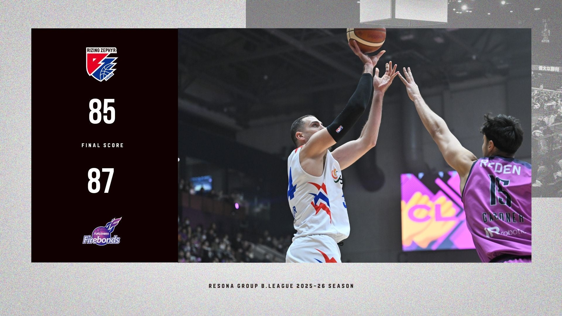2025年11月29日(土)に開催した、りそなグループ B.LEAGUE 2025-26 シーズン【ライジングゼファーフクオカ vs.福島ファイヤーボンズ】戦は、“福岡 85-87 福島”で福岡の敗戦となりました。
