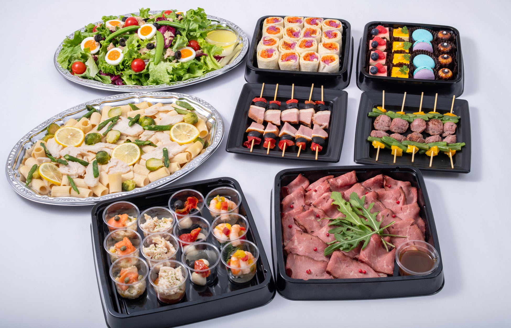 イベントに最適なメニュー:会話の邪魔をしないフィンガーフードを中心にした華やかで手に取りやすいメニューを取り揃え、ビジネスコミュニケーションをサポート。
