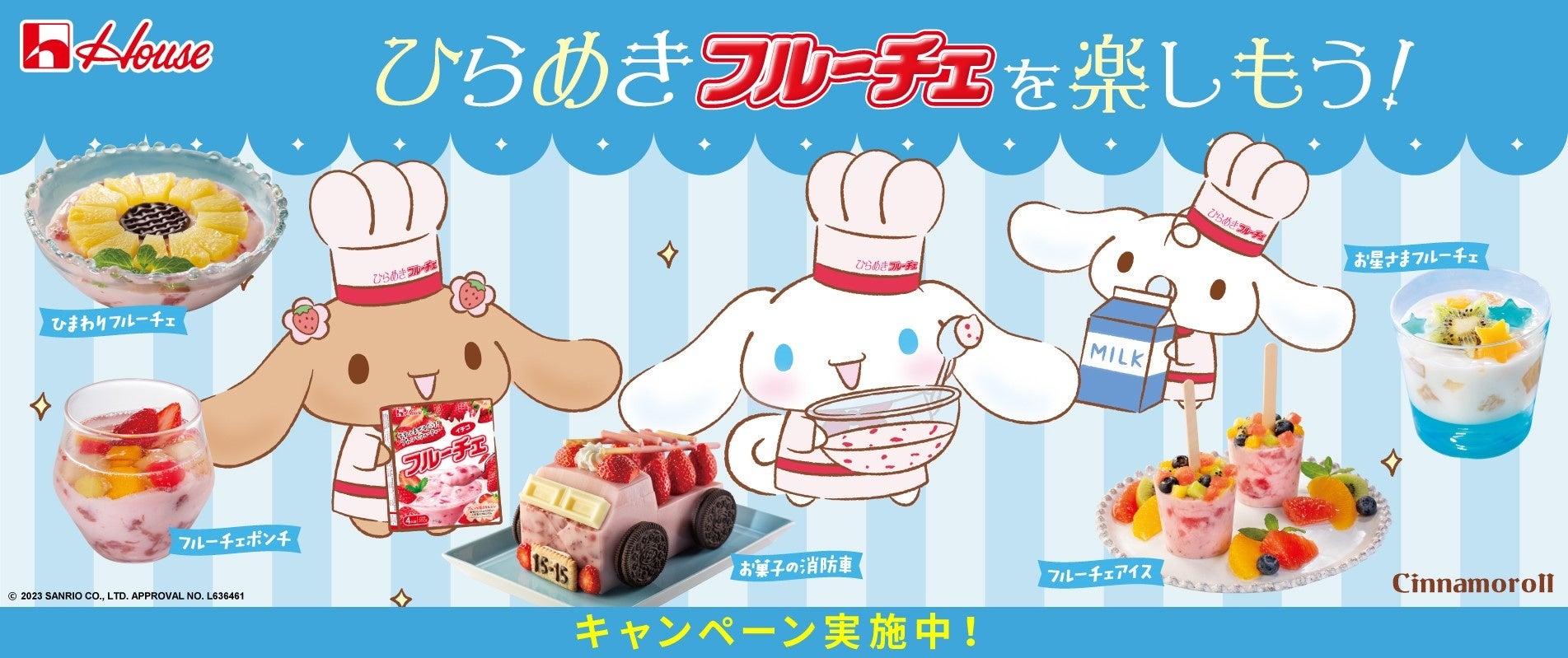 「フルーチェ」ブランドは、イメージキャラクターにサンリオキャラクターの「シナモロール」を起用した「ひらめきフルーチェ」プロモーションを実施しています。「フルーチェ」や、「フルーチェ」のアレンジレシピを作る体験を通して「お子様のやってみたい!」という好奇心を応援します。