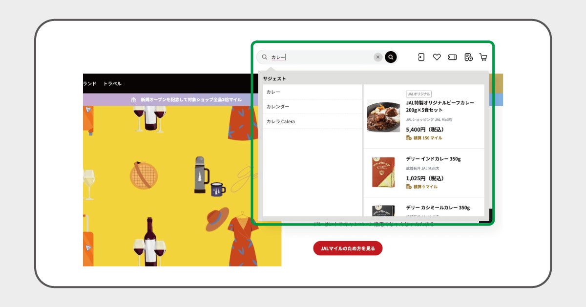 マイル情報や商品画像付きのサジェストでサイト内回遊を促進