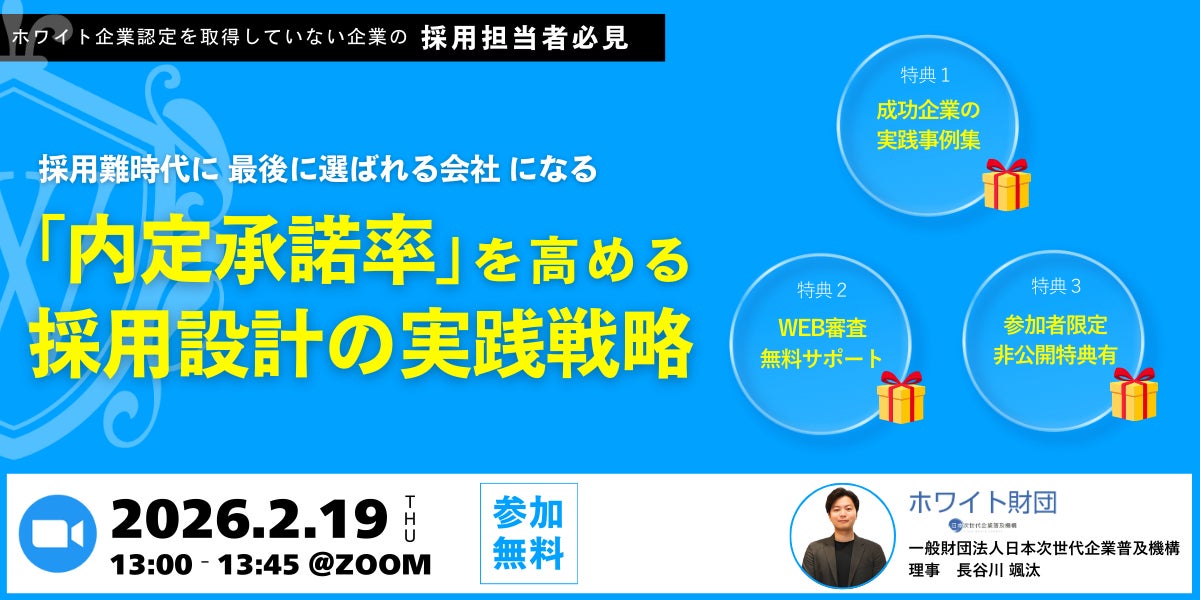 内定辞退が止まらない時代に、最後に選ばれる企業とは?——ホワイト企業が実践する「内定承諾率UP戦略」を解説する無料ウェビナー開催