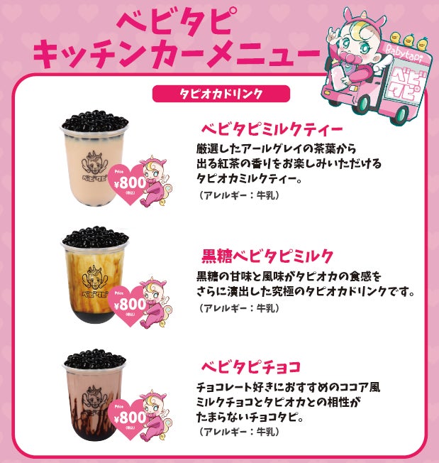 [商品例]タピオカドリンク(ベビタピミルクティー、黒糖ベビタピミルク、ベビタピチョコ)