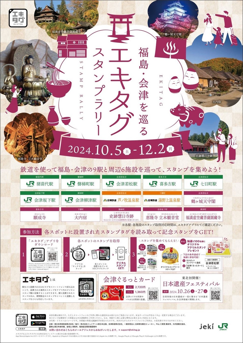 ◎2024年10月5日(土)より「福島・会津を巡る エキタグスタンプラリー」が開催されます。ぜひこの機会に会津エリアにお出かけください!