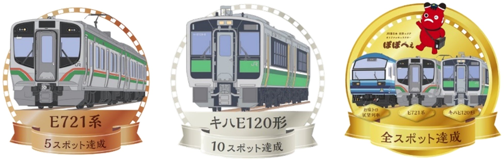 対象箇所15箇所の内、5箇所達成でE721系の達成スタンプをプレゼント(自動付与)