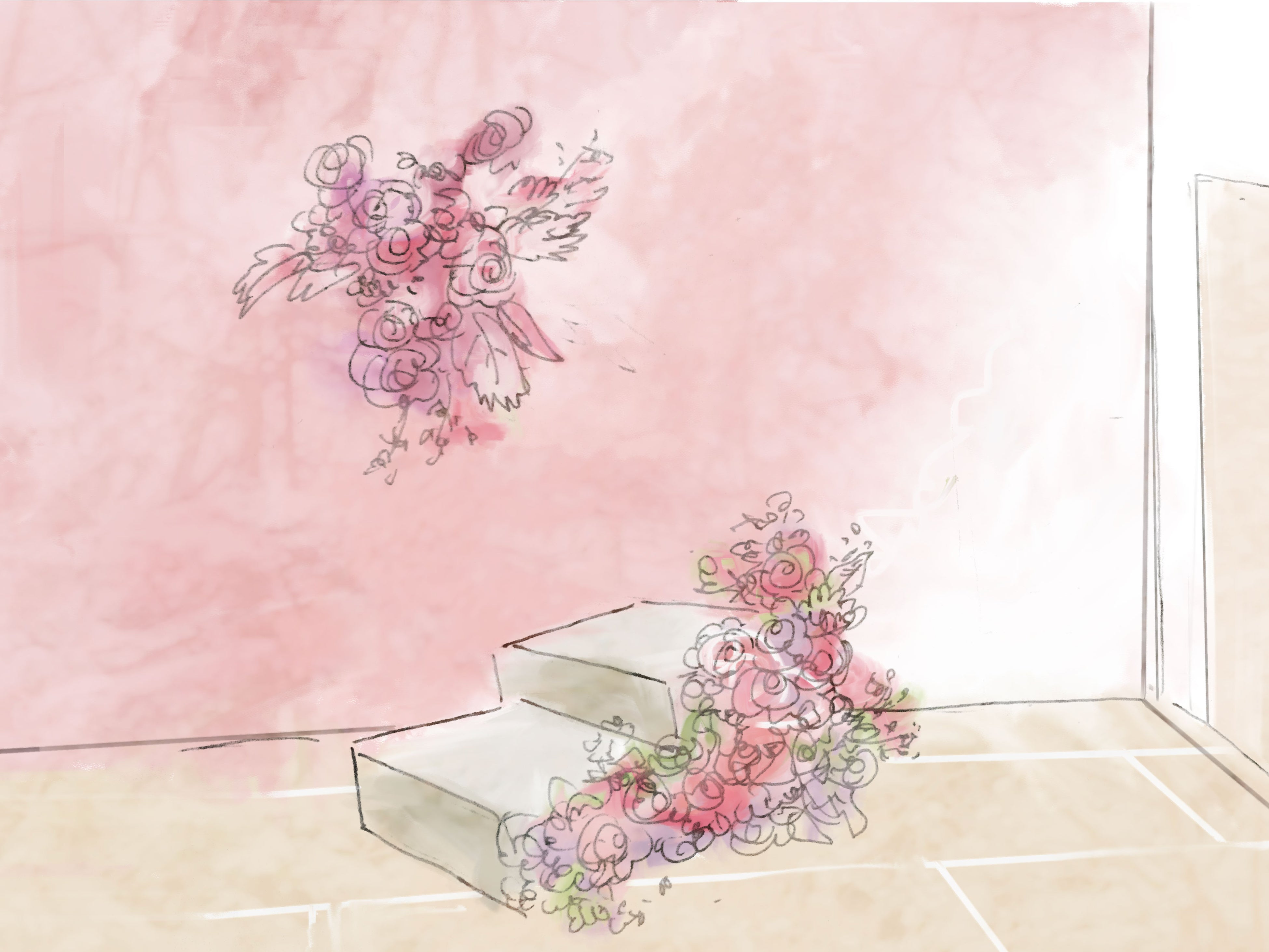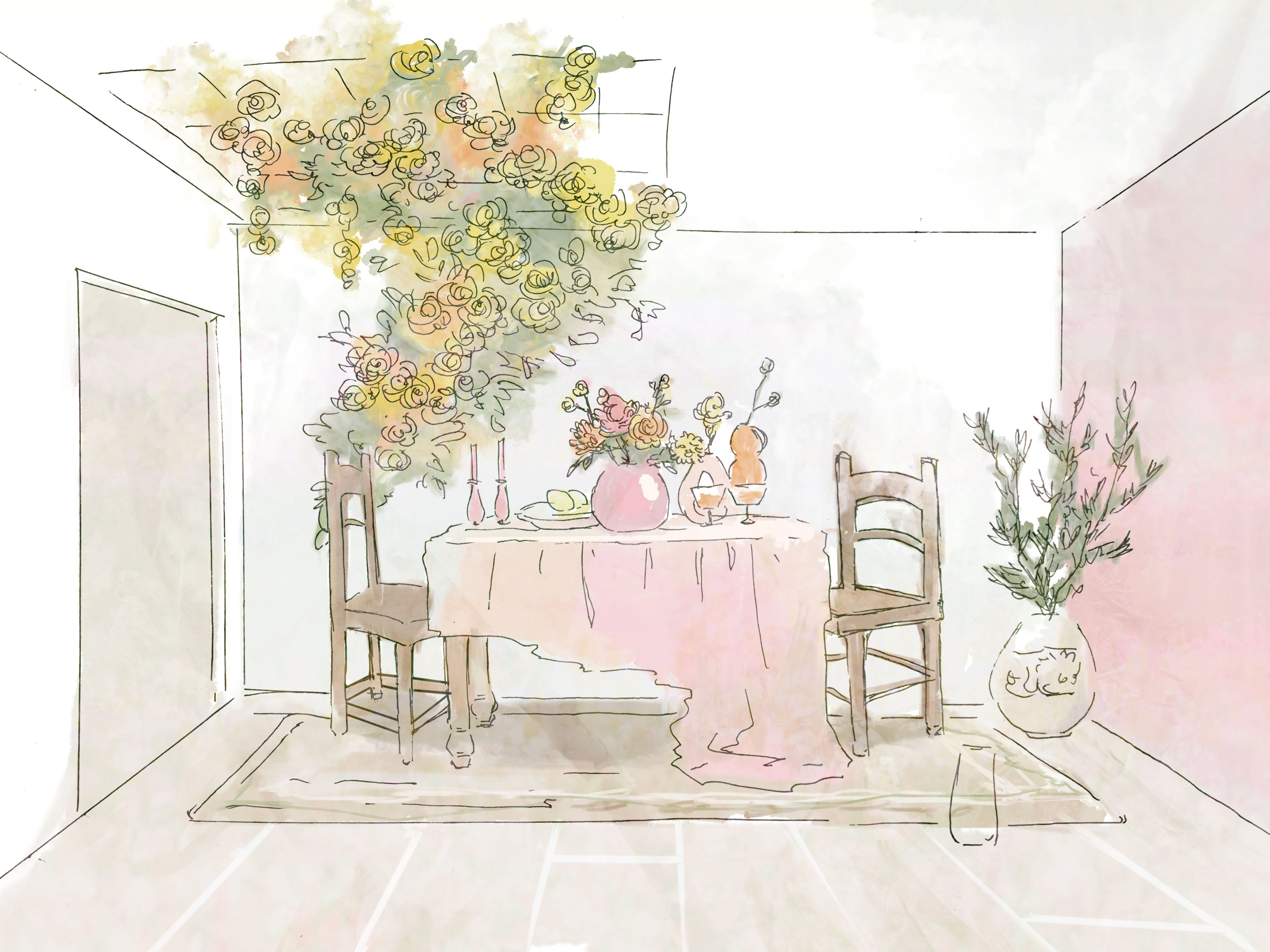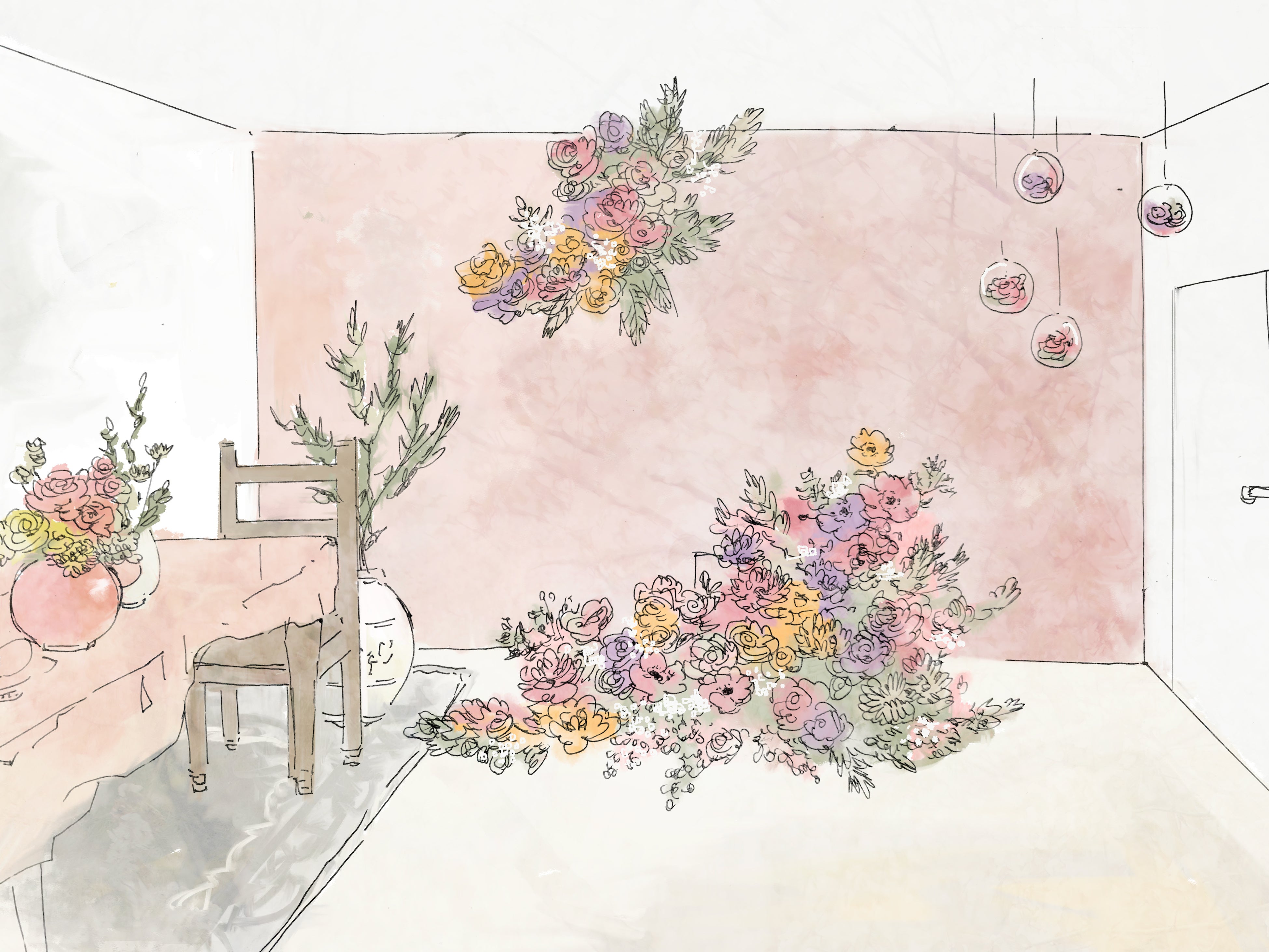 初デートのワクワク感あふれるピンクをメインとした柔らかい色合いの背景。