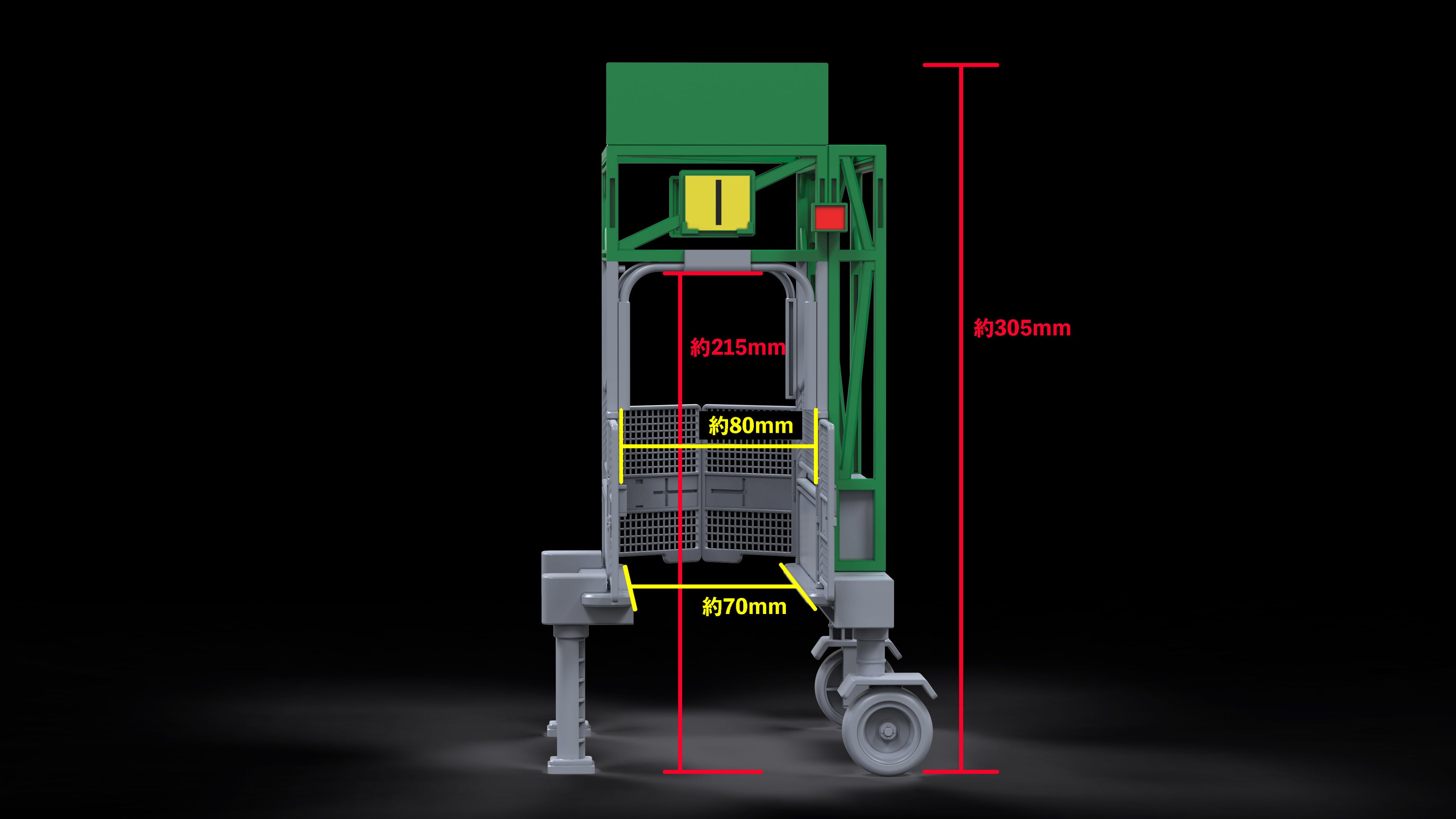 成形色は緑とグレーの2色。複数セット組み合わせることで出走枠の拡張を実現。拡張時の補助として「追加支柱基部パーツ」もご用意しました。