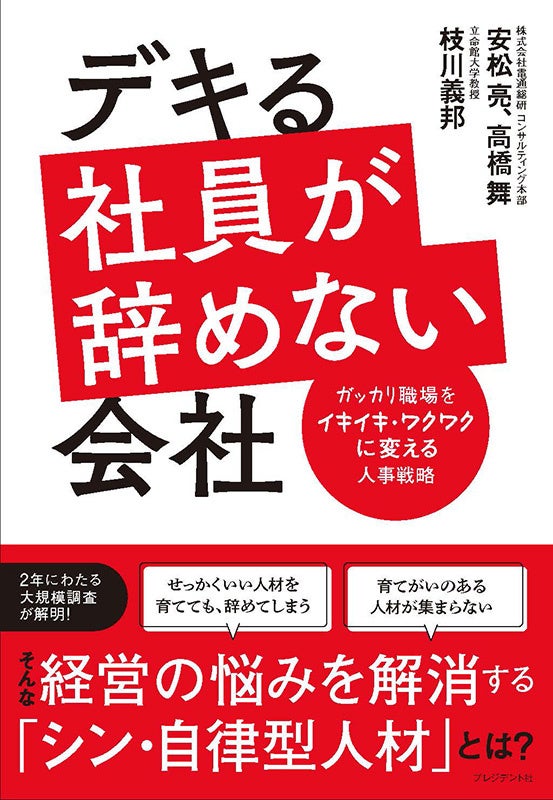 テクノロジーで企業と社会の進化を実現する株式会社電通総研(本社:東京都港区、代表取締役社長:岩本 浩久、以下「電通総研」)は、コンサルティング本部の安松 亮、高橋 舞と立命館大学 大学院 テクノロジー・マネジメント研究科 枝川 義邦教授が共同で執筆した書籍「デキる社員が辞めない会社 ガッカリ職場をイキイキ・ワクワクに変える人事戦略」を、株式会社プレジデント社より2025年11月28日(金)に刊行したことをお知らせします。