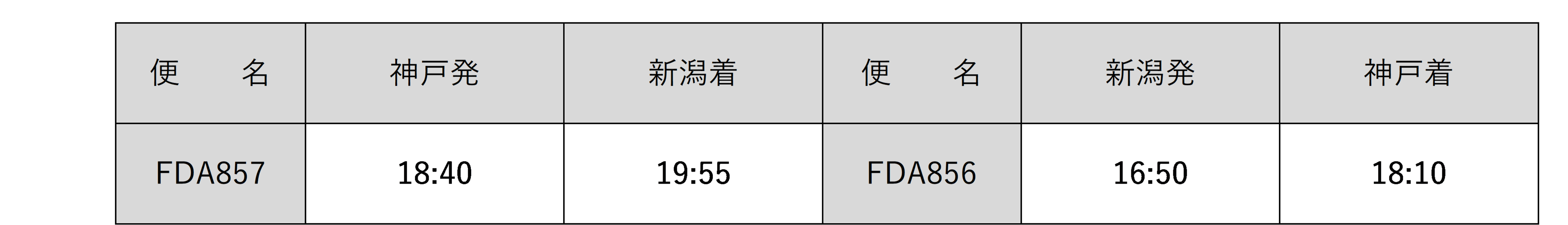 FDA 本日より『神戸=新潟』線に就航、『名古屋(小牧)=新潟』線を増便します