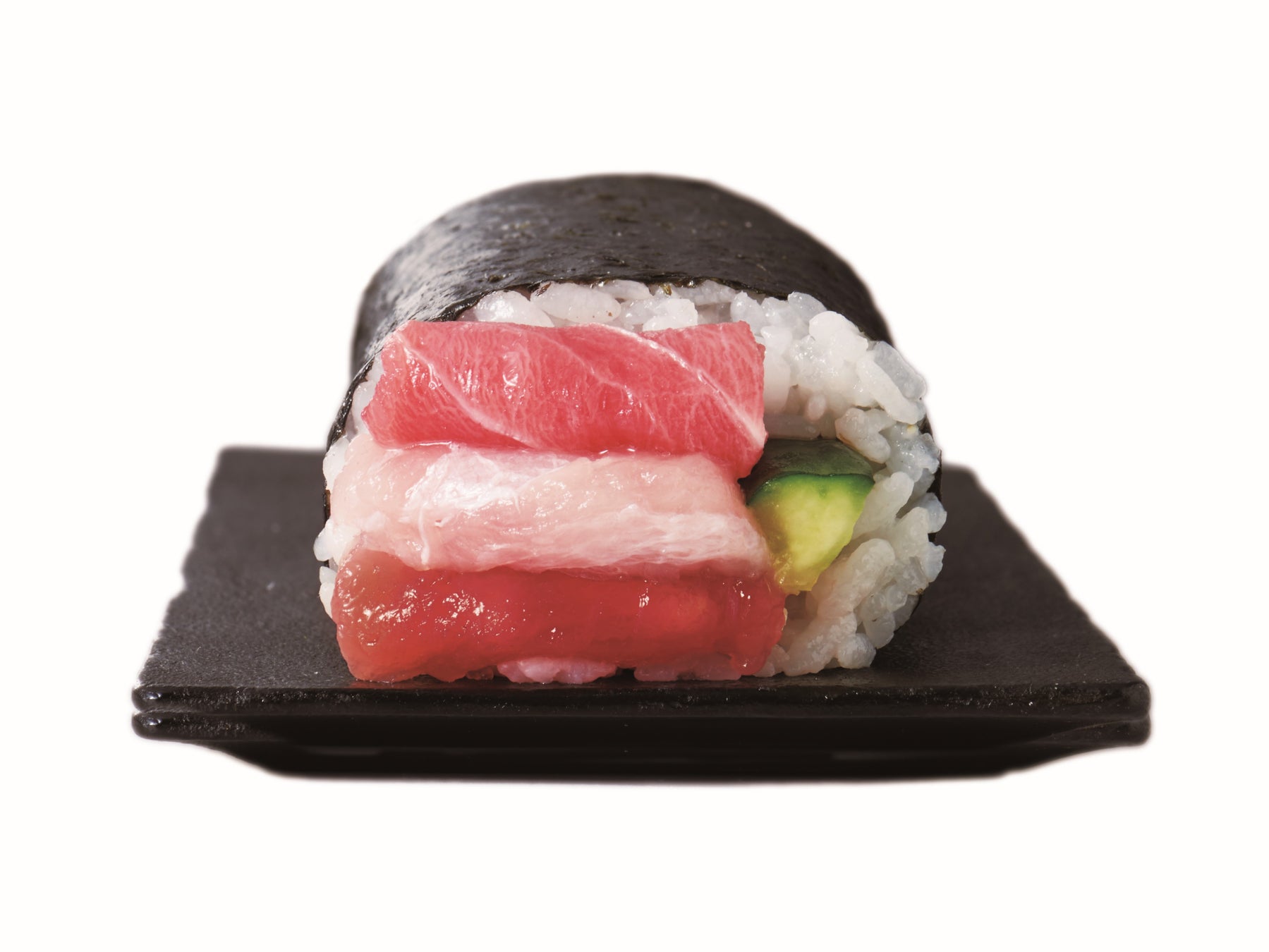 太巻を1/4本サイズにカットした、「本鮪中トロが入った3種のまぐろ巻」、