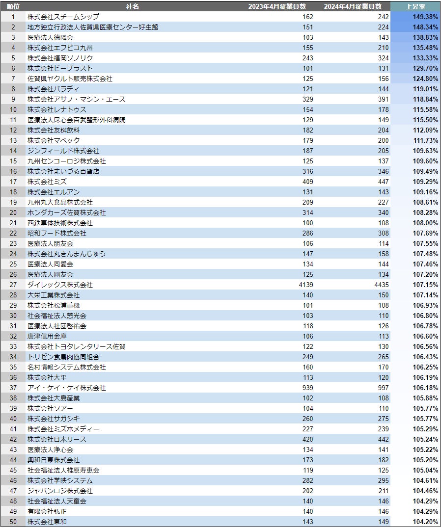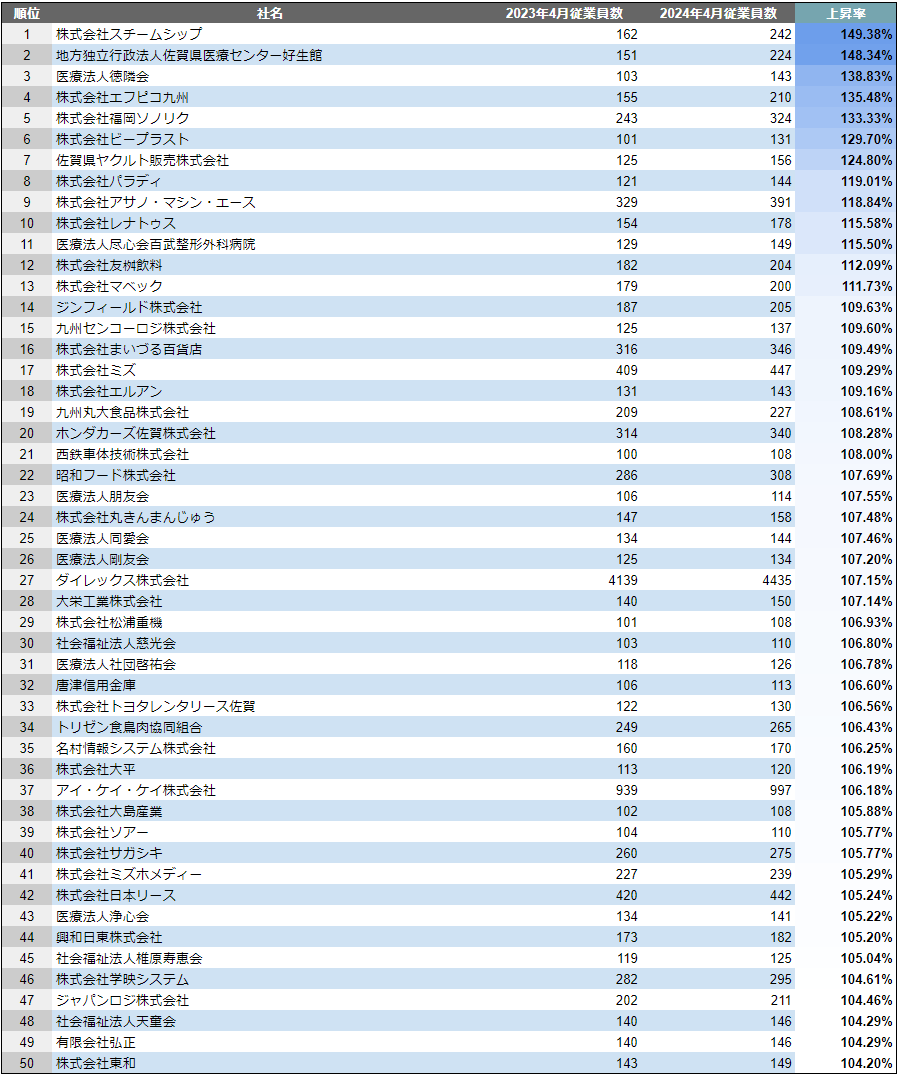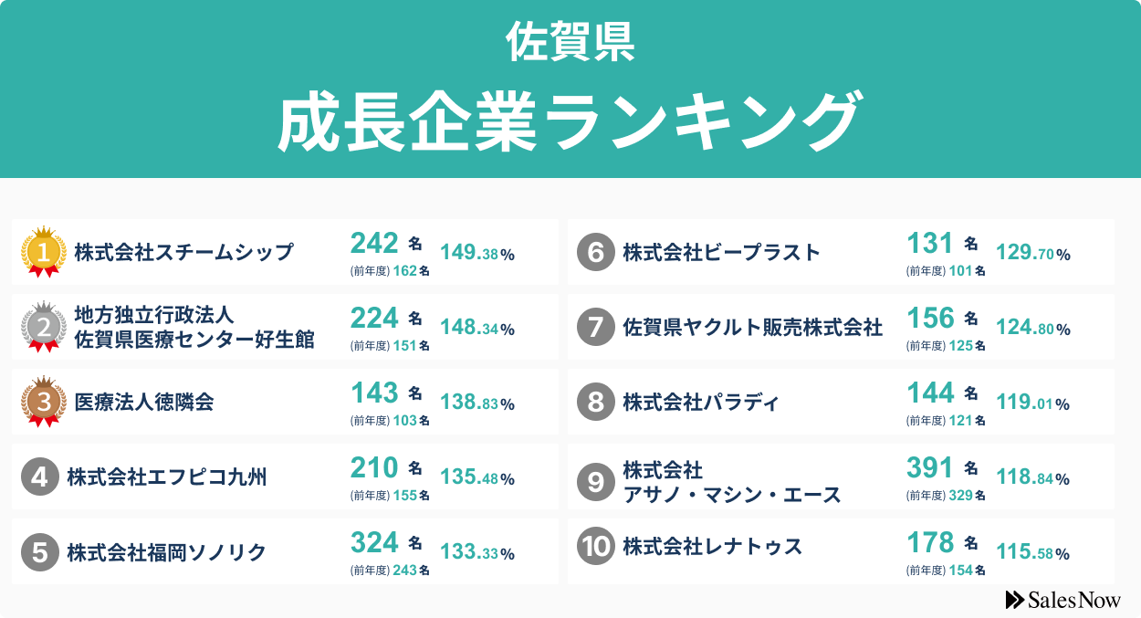 【佐賀県】成長企業ランキングTOP50!/SalesNow DBレポート