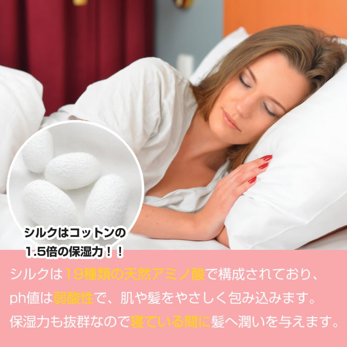 またシルクには天然の防菌作用があり、気になる髪の匂いを防ぎます。