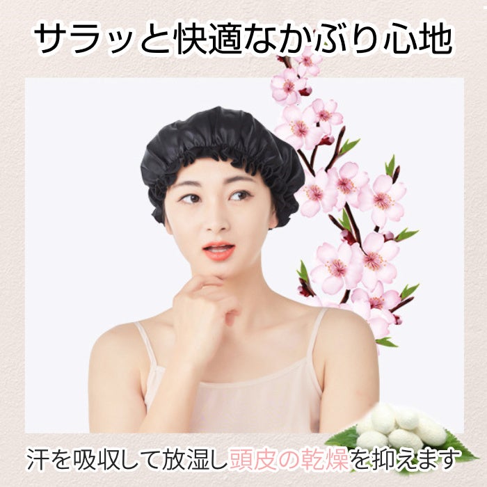 髪にうるおいを与えるシルク100%のナイトキャップ。