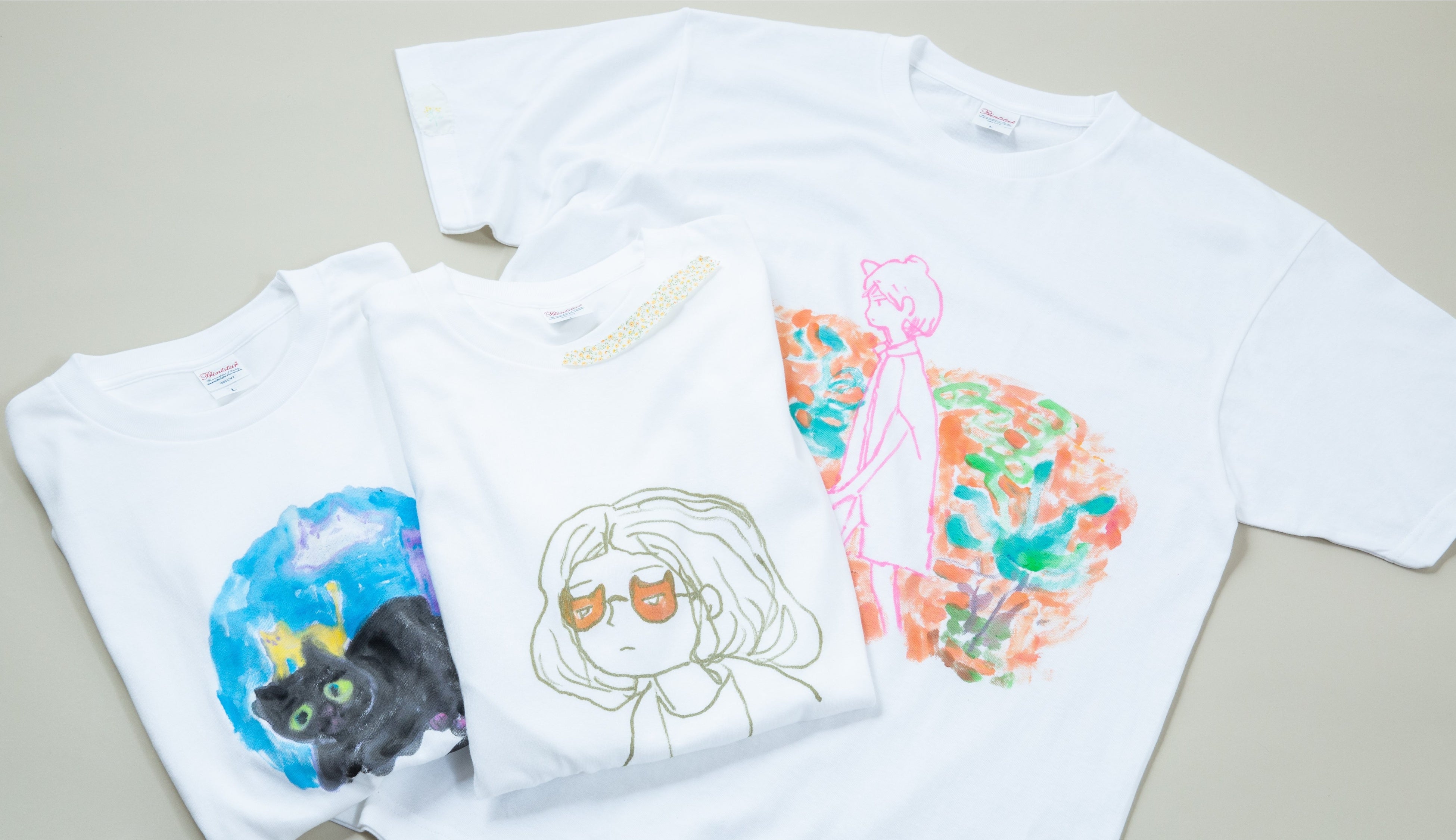 【銀座 蔦屋書店】作品集『空気に生まれかわる』刊行記念として、画家・工藤麻紀子作品展を11月5日(土)より開催。直筆原画Tシャツ27点とドローイング作品、版画作品展示のほか、プリント版Tシャツも販売