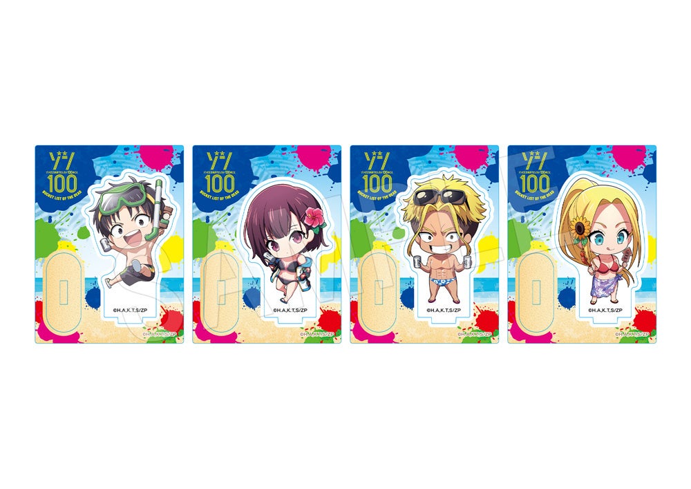 TVアニメ『ゾン100〜ゾンビになるまでにしたい100のこと〜』の新作グッズが「コミックマーケット102」で登場!水着姿の描き起こしイラストを使用した「トレーディングアクリルスタンド」や、作中の印象的なシーンをデザインした「Tシャツ」などが中外鉱業ブース[南4F No.2342]にて販売決定!