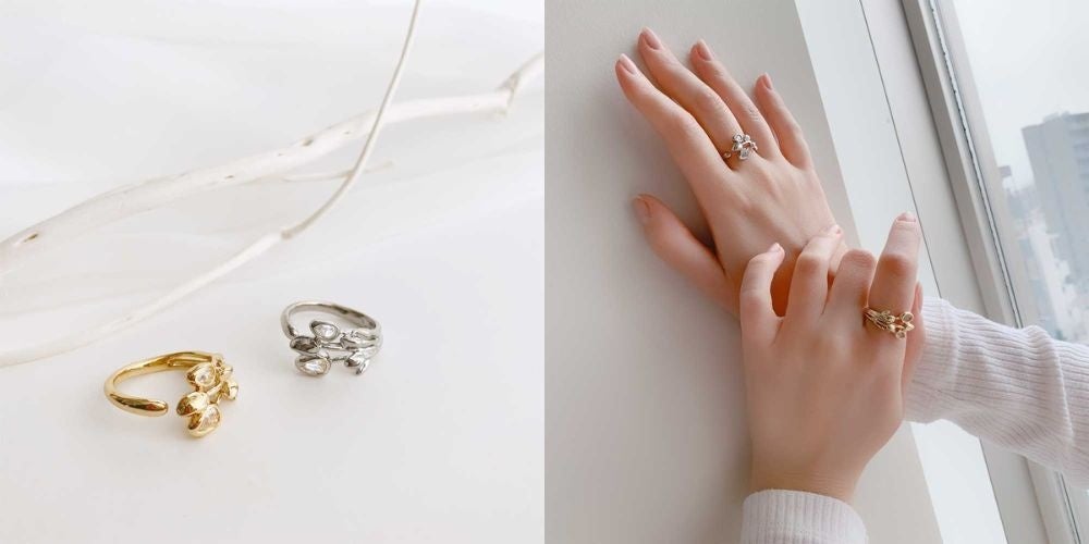 普通のリングとは少し変わった印象で手元を演出できるアイテムです。
