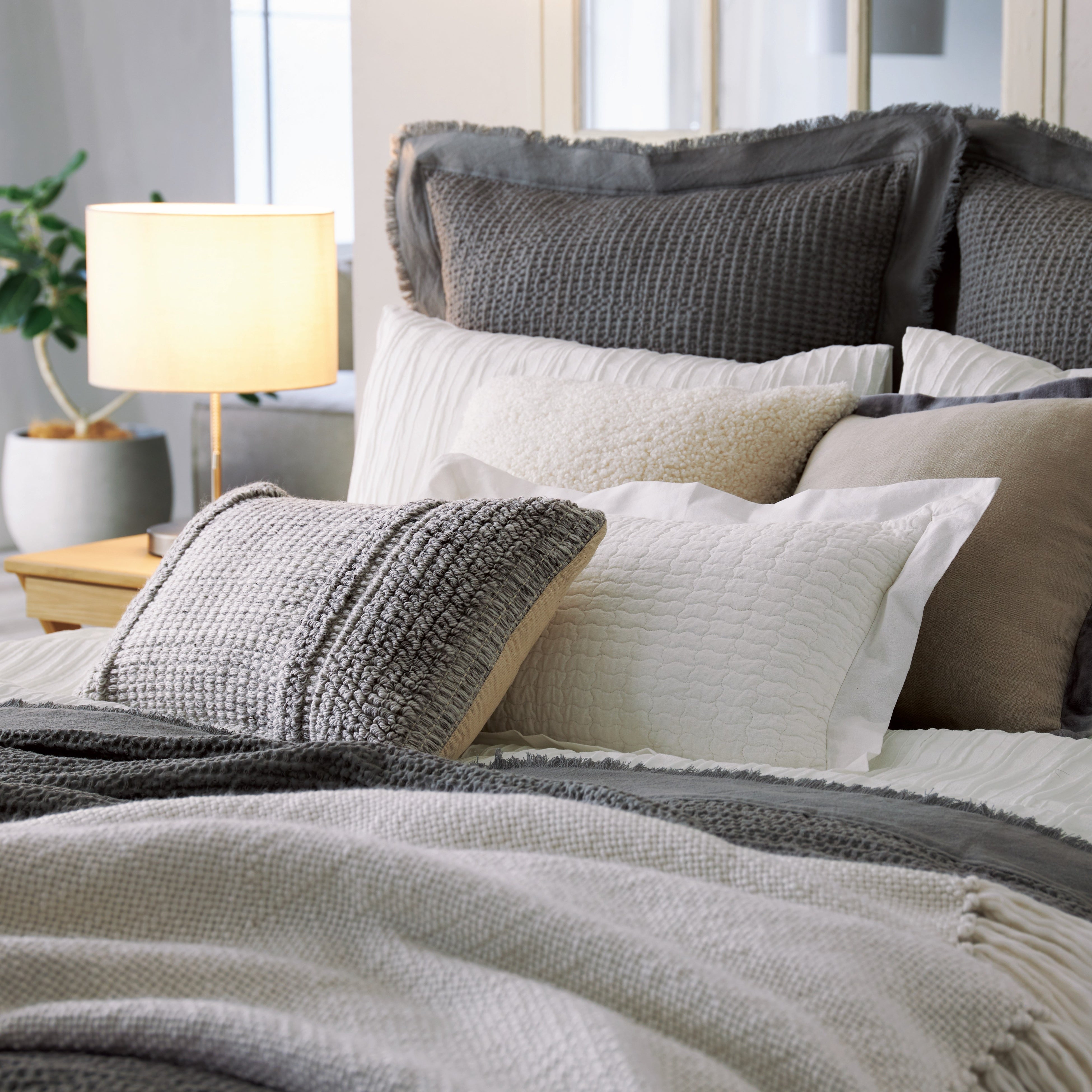 ざっくりとした表面からぬくもりを感じるクッション。インドの職人が1枚1枚手作業で仕上げたループの素材感がアクセントに。