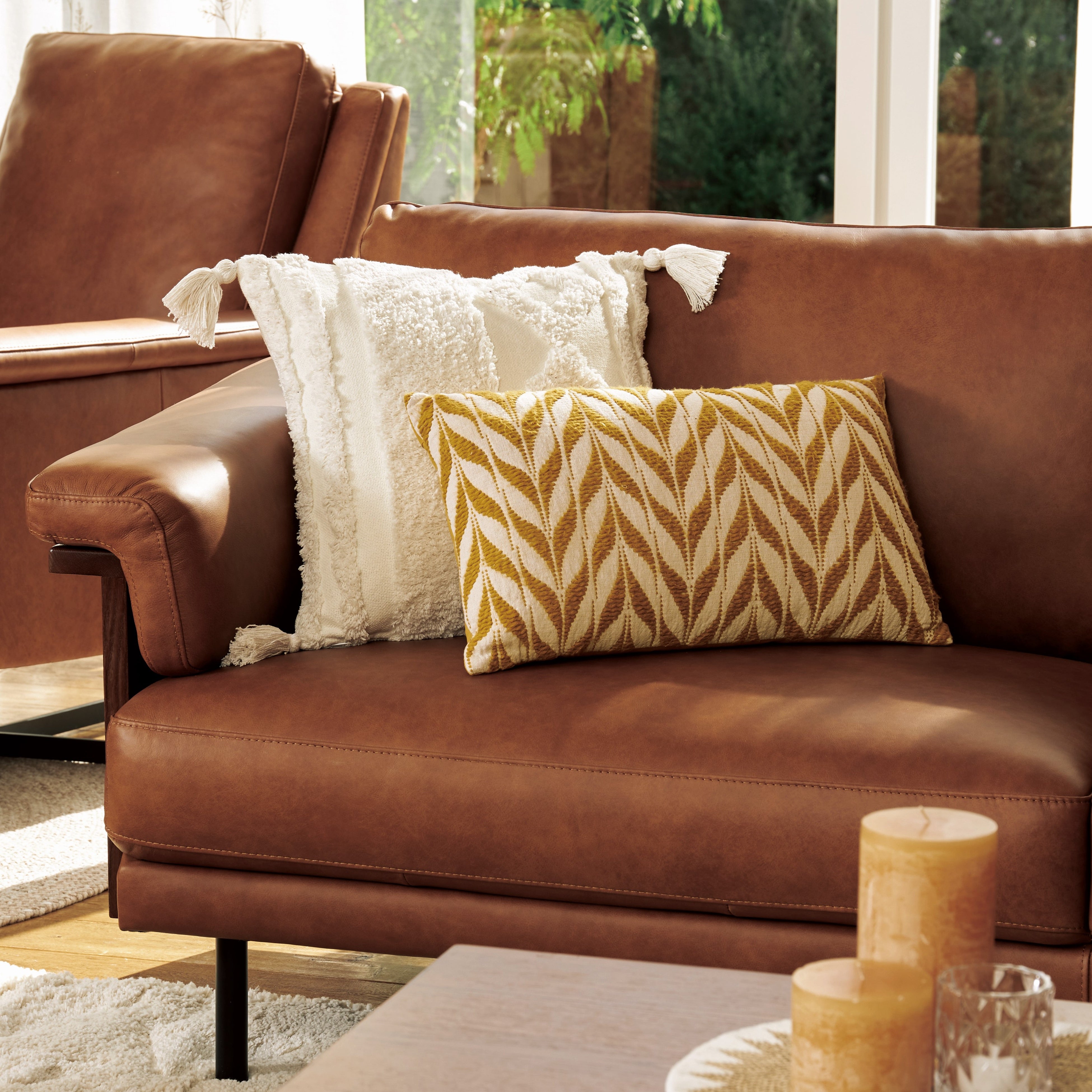 なめらかな肌ざわりで、触れるたびに癒される総革ソファ。時とともに変化する味わいを楽しみながらくつろぎのひとときを。