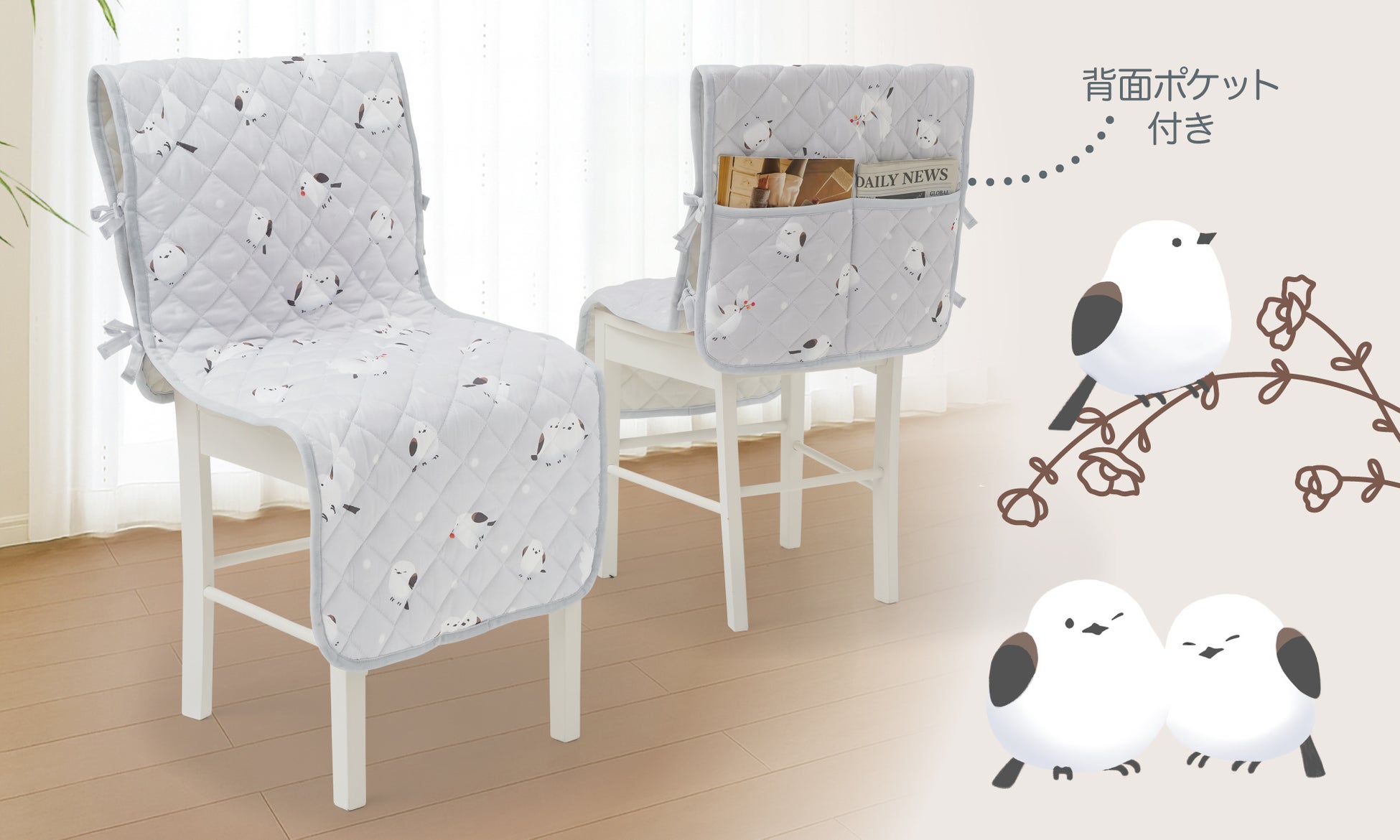 ”雪の妖精”シマエナガ柄 で椅子の汚れ・キズを隠して印象チェンジ♪ふんわりキルトのチェアカバー