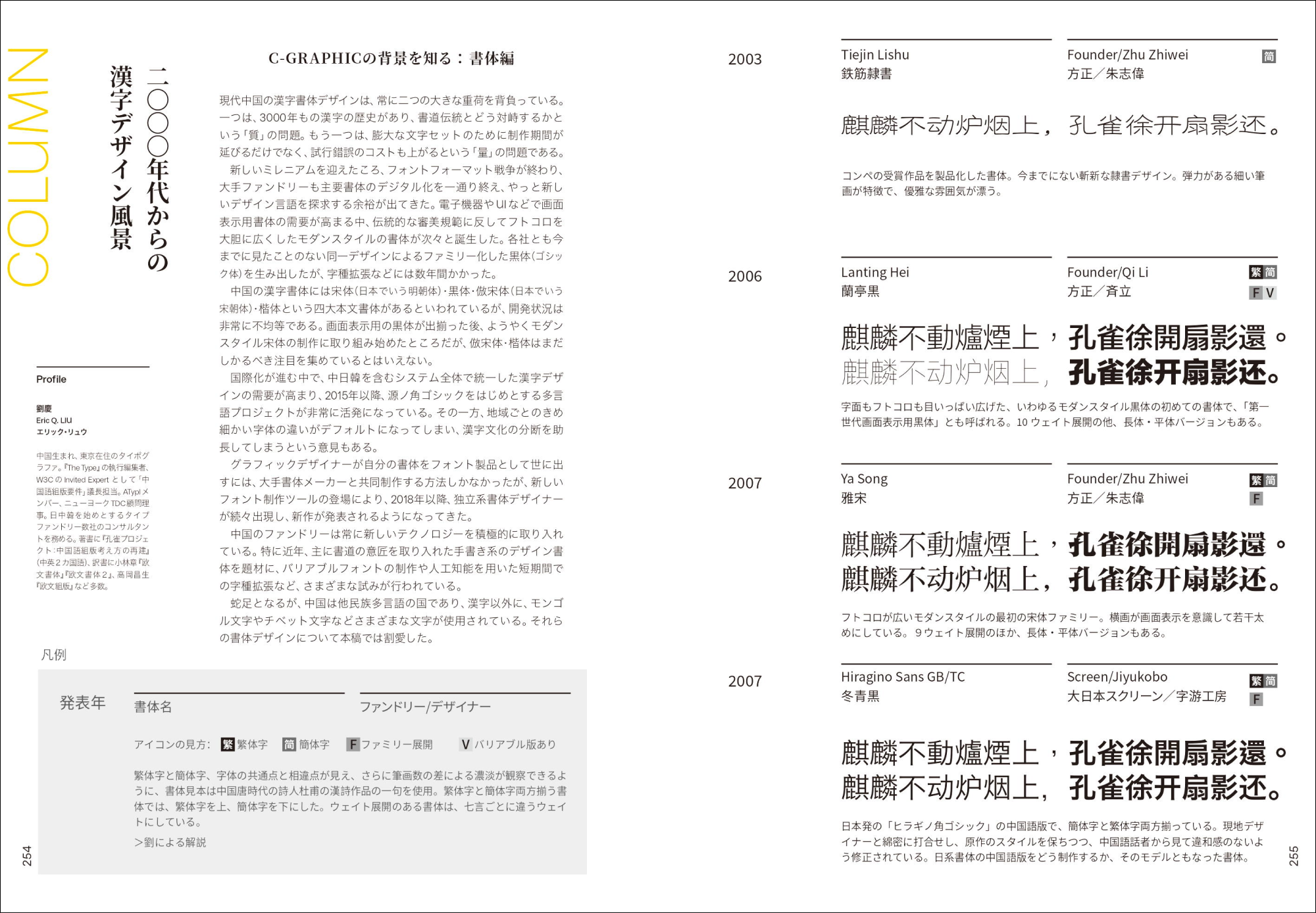 はじめに/カバーデザイン作品集/第1章:繁体字文化圏のグラフィックデザイナーたち:形容事物所、一歩工作室、ddd.pizza、圭島設計 by tsaichiahao、洪彰聯/Elf-19、HOUTH、O.OO™、Oval graphic、Sydney Sie、TINGANHO.INFO、Eddie The Studios、for&st、makkaihang design、Nous、RGBK、SomethingMoon、Untitled Macao/〈コラム〉C-GRAPHIC の背景を知る(繁体字編):台北在住デザイナー、チャン・プーフイが見る台北のデザイン事情/第2章:簡体字文化圏のグラフィックデザイナーたち:大田作物設計工作、LAVA 北京、一千遍、ori.studio、PANGOLIN、PAY2PLAY、United Design Lab、4aC Design、曲閔民&蒋茜設計事務所、Allergy Studio、大気設計、Ginko、KAUKAU、Made by Sandwich、MORE studio、notadesign、PAGE OF、有関設計部門、STUDIO DPi、Studio Yuan、W_W_W Design、workbyworks、XYZ Lab、quinsay design、非白工作室、Studio Pianpian He and Max Harvey、another design、a one and a two design、TEN BUTTONS、Herbr Lin/〈コラム〉C-GRAPHIC の背景を知る(簡体字編) 日本在住デザイナー、邵琪が見る中国とデザイン/第3章:華僑文化圏のグラフィックデザイナーたち:Can Yang、FIBI KUNG、Suzy Chan、Research Studio、Text to Type、sunyao.design、Company 2、LAJOS、OU DESIGN LAB/〈コラム〉C-GRAPHIC の背景を知る(書体編) 2000年代からの漢字デザイン風景 文:劉慶/カバーデザイン作品集|コンセプト解説/おわりに