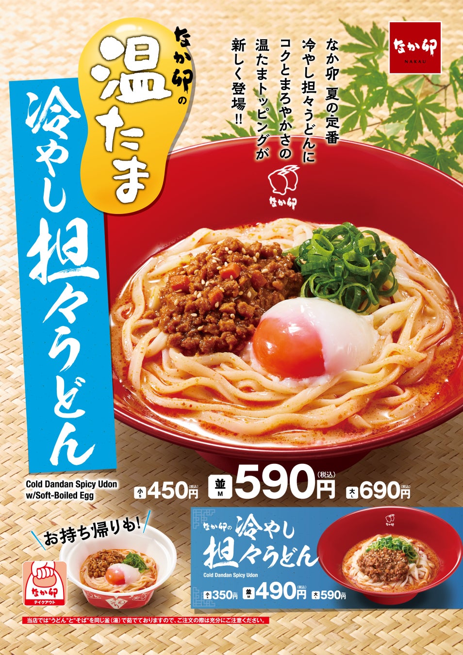 また「温たま冷やし担々うどん」「冷やし担々うどん」は、小サイズもご用意しているため、なか卯定番の親子丼とセットでもお気軽にご注文いただけます。