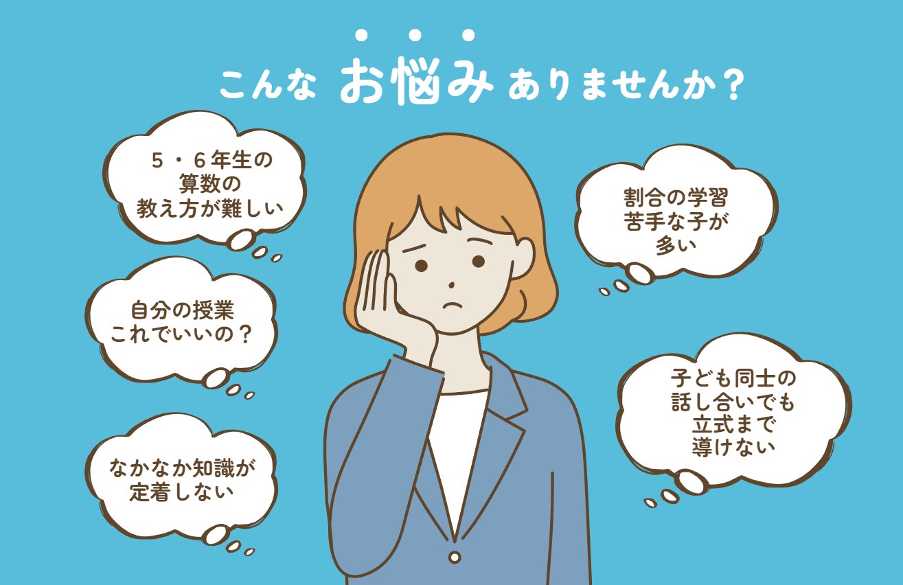「先生方、5年生の算数の割合で困った経験はありませんか?私自身、昨年から5年、6年と持ち上がって担任をしていますが、割合を苦手にしている子が多いことに悩みを感じています。問題文から、立式するのを難しく感じている子も多く、関係図の書き方を教えて関係図を書くように指導しても、テストが終わると忘れてしまう。そして、時間が経って練習問題をすると、「わかりません〜」の嵐。中々自分自身が割合に対して定着させる指導ができていないと強く感じています。」