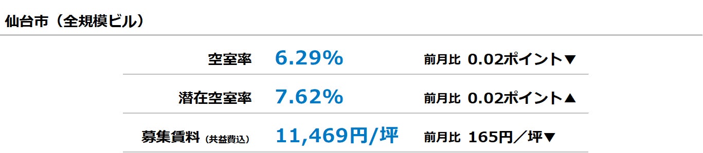 [仙台版]【最新オフィスマーケットレポート発表】オフィス空室率 前月からほぼ横ばい