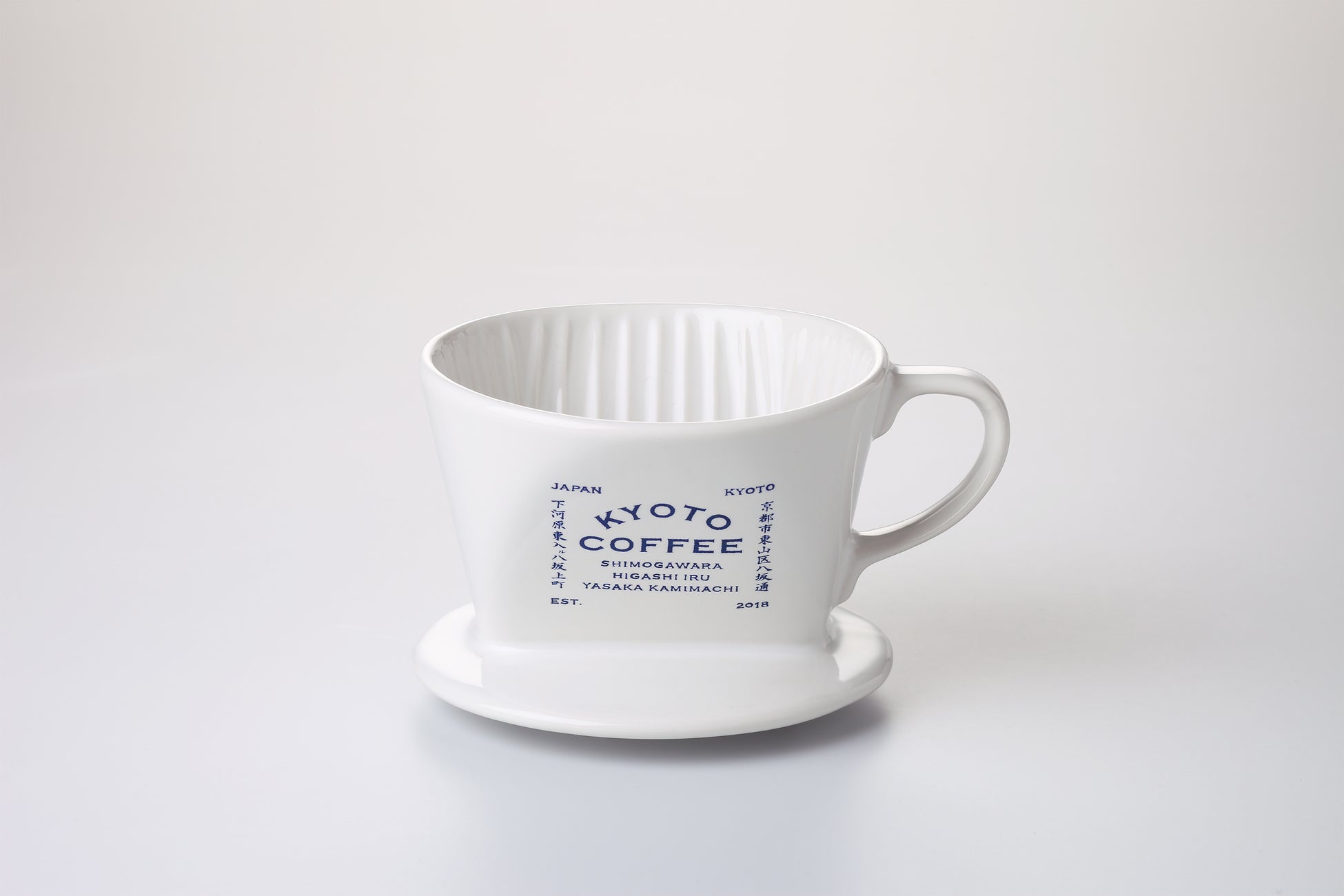 『日東堂』内に併設するコーヒースタンド『KYOTO COFFEE』オリジナルのコーヒードリッパーと豆皿を発売します。『KYOTO COFFEE』で人気のマグカップやキャニスターと同様、奈良時代から1300年余の歴史を持つ岐阜県・多治見の陶磁器「美濃焼」で、こだわりのコーヒータイムを演出します。やわらかな純白の表面に、日本の伝統色である藍色で『KYOTO COFFEE』のロゴをあしらったデザインです。