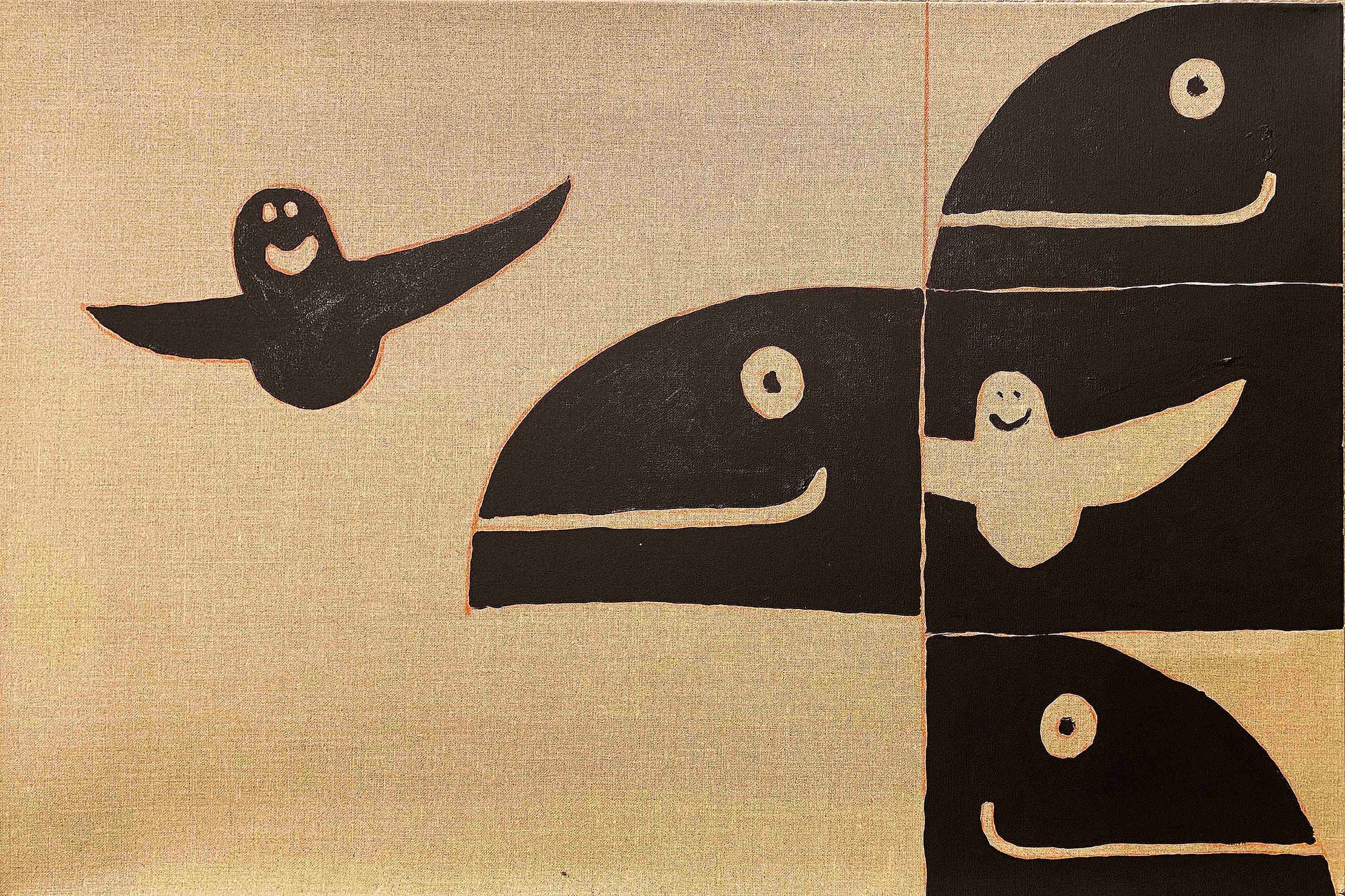 『SNOW PROBLEM』と題された今回の本展でのインスピレーションをアーティスト、マーク・ゴンザレスは次のように語ります。「今回の個展では、自分の持つシンプルな曲線を追求しました。リネンの自然素材のキャンバスに黒いペイントをのせて、できるだけシンプルに。」
