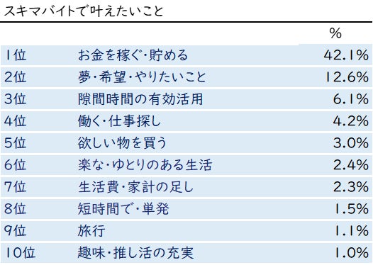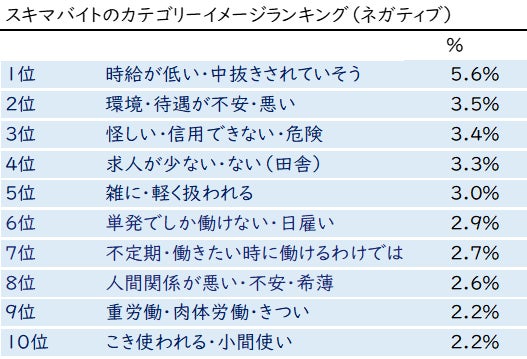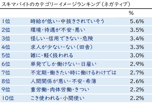 そこで、スキマバイトの現状を知るために、ネガティブ・ポジティブなイメージ、利用のきっかけ、叶えたいこと、スキマバイトのサービスを利用する際に想起するアプリ・サイトを調査しました。