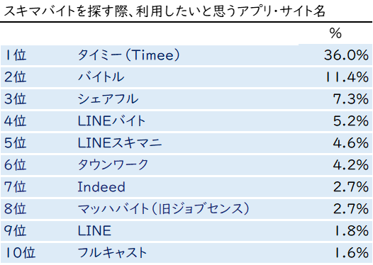 タイミー、バイトル、シェアフル、LINEバイトなど、スキマバイトの主要なプラットフォーム。