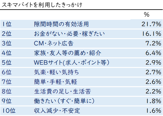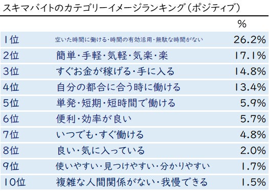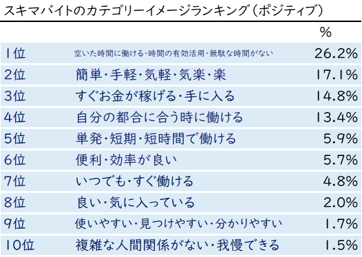 ○ ポジティブ: 時間の有効活用、簡単・気軽に稼げる、自由で多様な職種。