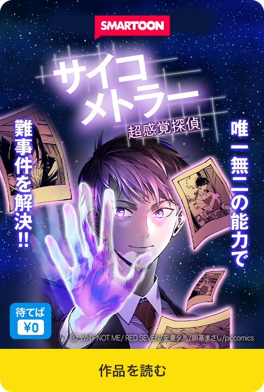 毎週木曜日に1話ずつ更新予定で、プロローグ〜3話までは無料で読むことができ、4話からは「待てば¥0®︎」で読むことができます。是非、フルカラー・縦スクロールマンガSMARTOONになって連載が始まる『サイコメトラー 超感覚探偵』をピッコマでお楽しみください。