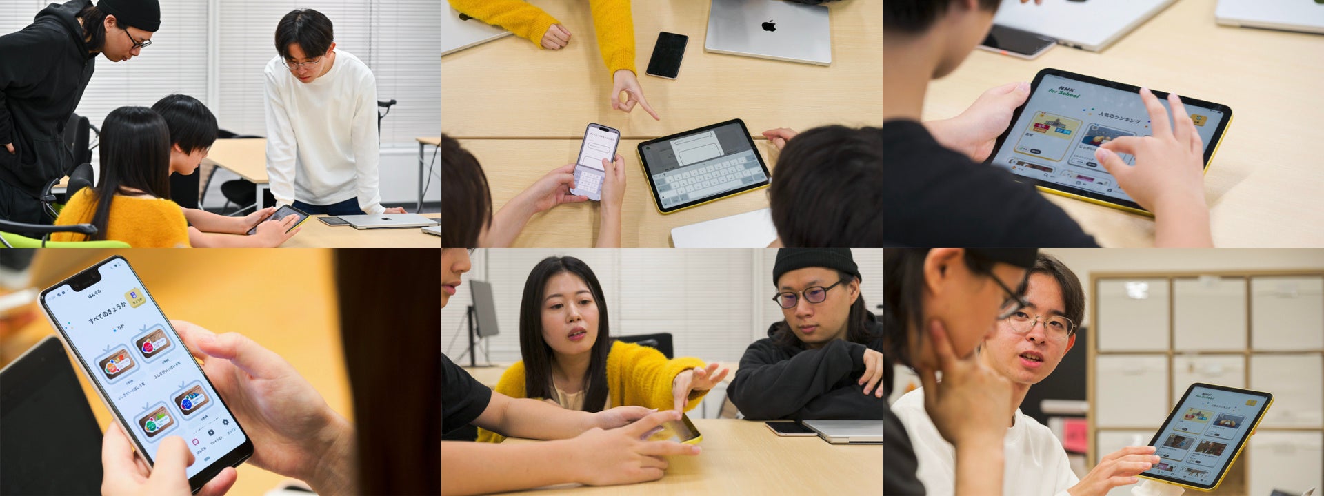 さらに開発途中のテストアプリを小学校の授業で使ってもらい、子ども・教師・教育専門家などの有識者からフィードバックを得る会を実施。アプリの根幹となる動画視聴機能を中心に実際のアプリを触ってもらって使いづらそうな箇所の発見につなげたり、その後のデザイン・開発のブラッシュアップに生かしたりしました。