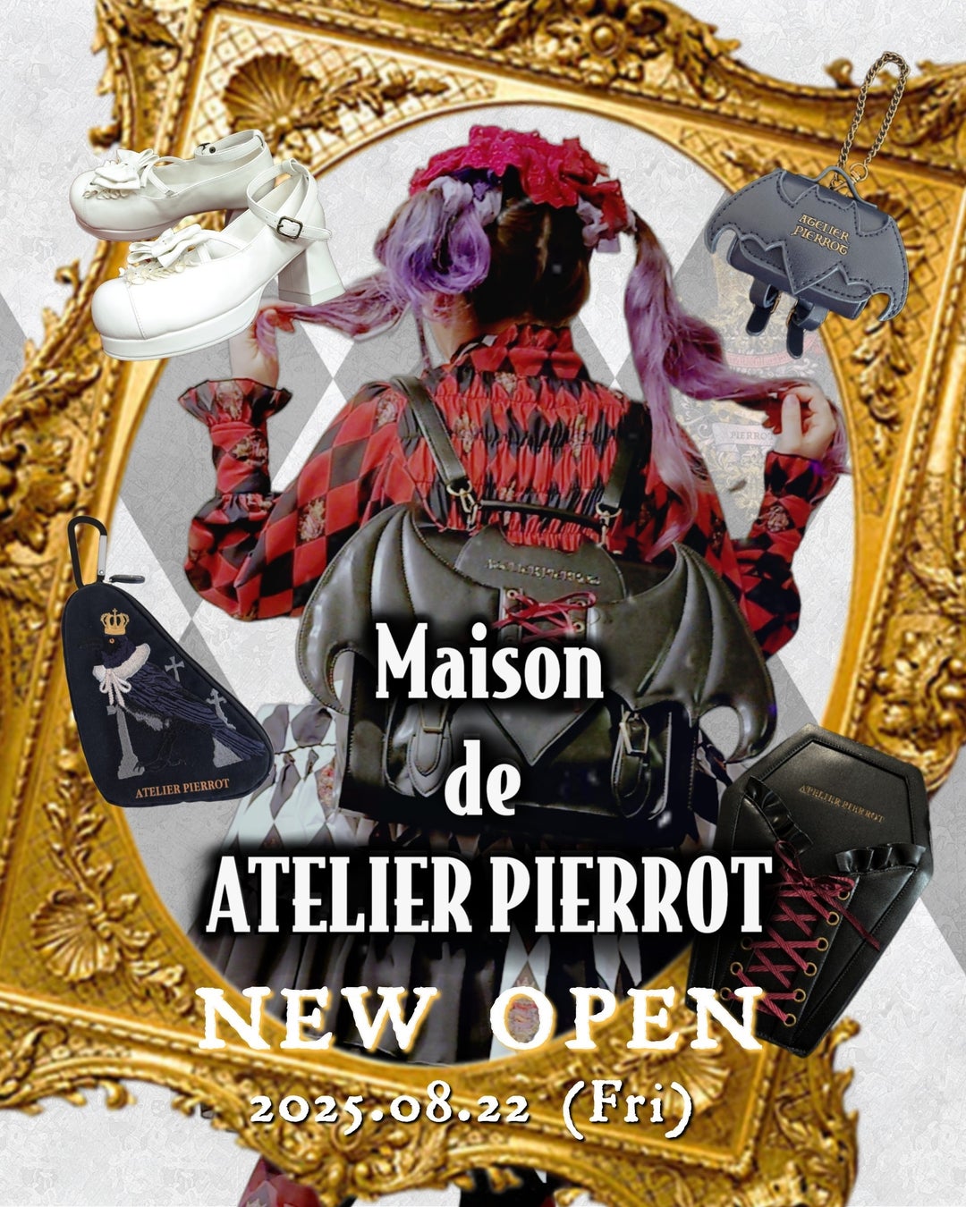 B1.5Fの人気ゴシック&ロリータファッションブランド「ATELIER-PIERROT」より、ブランド初となる雑貨を中心とした新店舗がオープン。シューズやバッグ、傘などの新作をはじめ、ATELIER-PIERROTの世界観を日常に取り入れられる雑貨類を多数ラインアップ。不思議なサーカスをイメージした内装の「Maison(メゾン)」で、特別なショッピング体験をお楽しみください。