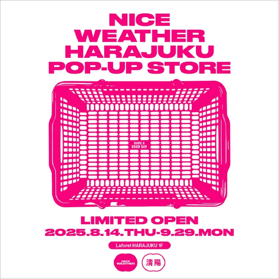 ファッション、カルチャーの分野で注目を集める韓国・ソウル発のセレクトショップ「NICE WEATHER(ナイスウェザー)」。ショップのプライベートブランドは、キャッチーなロゴやグラフィックを用いた個性豊かなデザインが特徴で、国内外の若年層から支持を集め、感性を刺激する新しいショッピング体験を提供します。また、今回の出店を記念し、ラフォーレ原宿でしか手に入らない限定アイテムや、人気アイテムの別注バージョンを発売予定。ファッション感度の高い若年層を中心に話題必至のラインアップです。