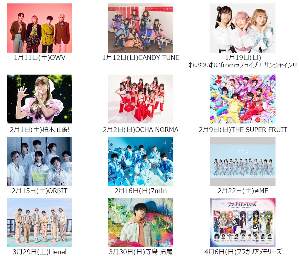 シーズン期間中にあわせて、アイドルや声優、タレント、アニメコンテンツなど、さまざまなジャンルのアーティストとのコラボレーションイベント「推し活ピューロランドフェス」を開催します。エンターテイメントホールにて、全12組のアーティストとのコラボイベントを実施。