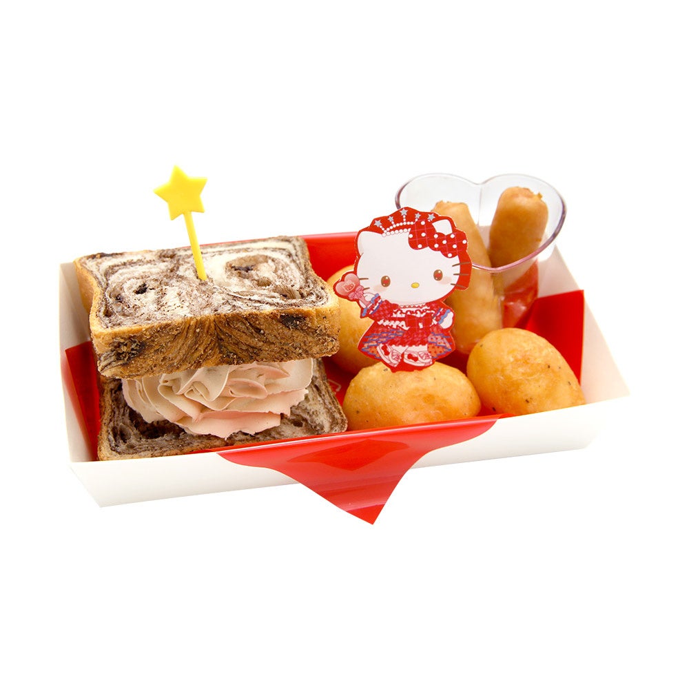 モーニングメニューの「推し活応援★モーニングセット~ホイップサンド&ピッコラ~」は、キャラメルホイップとマーブルブレッドのホイップサンドに、もちもちとした食感がクセになるチーズ味のピッコラがセットになったパワーチャージにぴったりな一品。ノベルティの紙製うちわとあわせて、好きなキャラクターの推し活をする際にぴったりです。他にも、うちわを持ったキャラクターたちがキュートなカレーや、15時から販売となる全6種類からデコレーションアイテムを選んでデコれる「推しデコ♡パフェキット ~ミルクプリンパフェ&推し色BOX~」など、食べるのはもちろん、推しのキャラクターグッズと組み合わせて写真撮影も楽しめるメニューが全19品登場します。