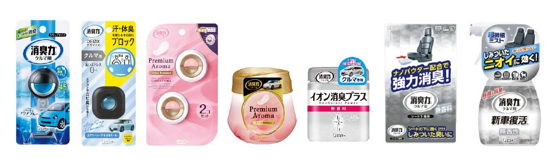 さらに近年では上質な香りにこだわったワンランク上の「クルマの消臭力 Premium Aroma」やレセプターブロック消臭で悪臭を消臭する「消臭力 DEOX クルマ用」、香りでごまかさない無香タイプの「イオン消臭プラス」を新たにラインナップしました。