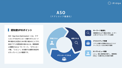 アイリッジのASO(アプリストア最適化)支援サービスについて(https://iridge.jp/service/app_growth/#aso)