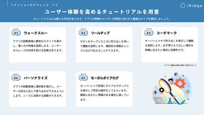 アプリの離脱理由となる5つのケースの詳細と、リテンション(関係維持)のテクニックをご紹介しています。