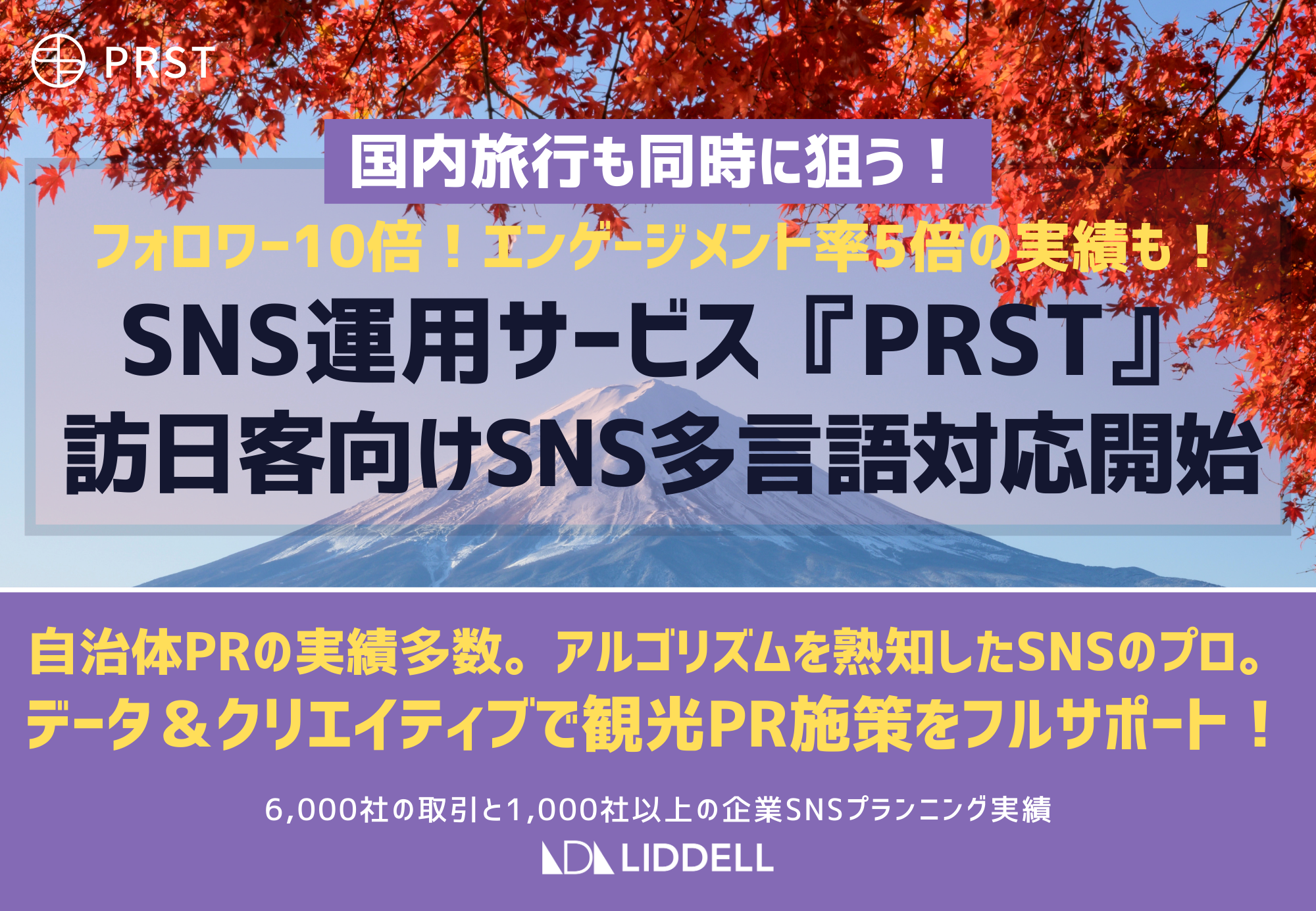 【訪日客向けSNS多言語対応開始】フォロワー10倍!エンゲージメント率5倍の実績も!SNS運用サービス『PRST』で国内旅行も同時に狙う!