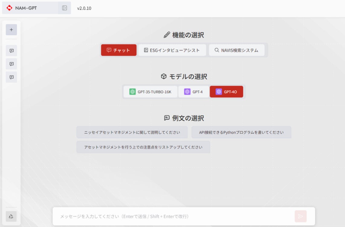 株式会社ナウキャスト(本社:東京都千代田区、代表取締役CEO:辻中 仁士、以下「ナウキャスト」)は、ニッセイアセットマネジメント株式会社(本社:東京都千代田区、代表取締役社長:大関 洋、以下「ニッセイアセットマネジメント」)と協働し、お客様への提案活動の高度化など様々な社内業務の効率化を目的として、生成AIを活用した社内アプリケーションを開発しました。