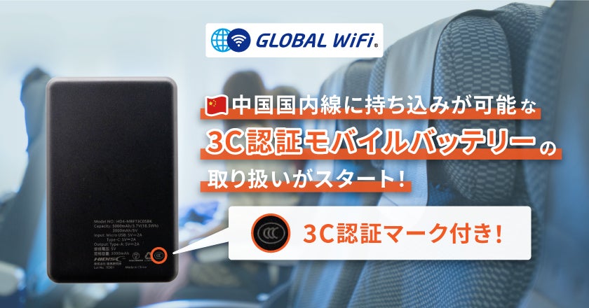 「グローバルWiFi®」モバイルバッテリーのレンタルオプションに中国『3C認証』取得製品を採用