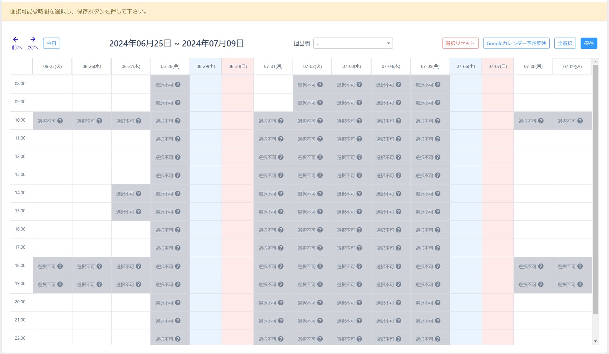 応募者との面接スケジュール調整を自動化する機能です。面接官が面接対応が可能な日時を予め登録し