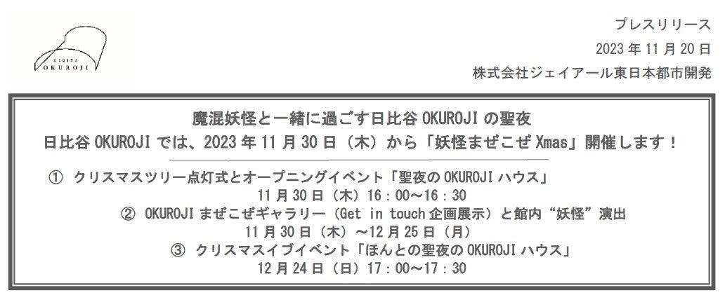 【日比谷OKUROJI「妖怪まぜこぜクリスマス」実施概要】