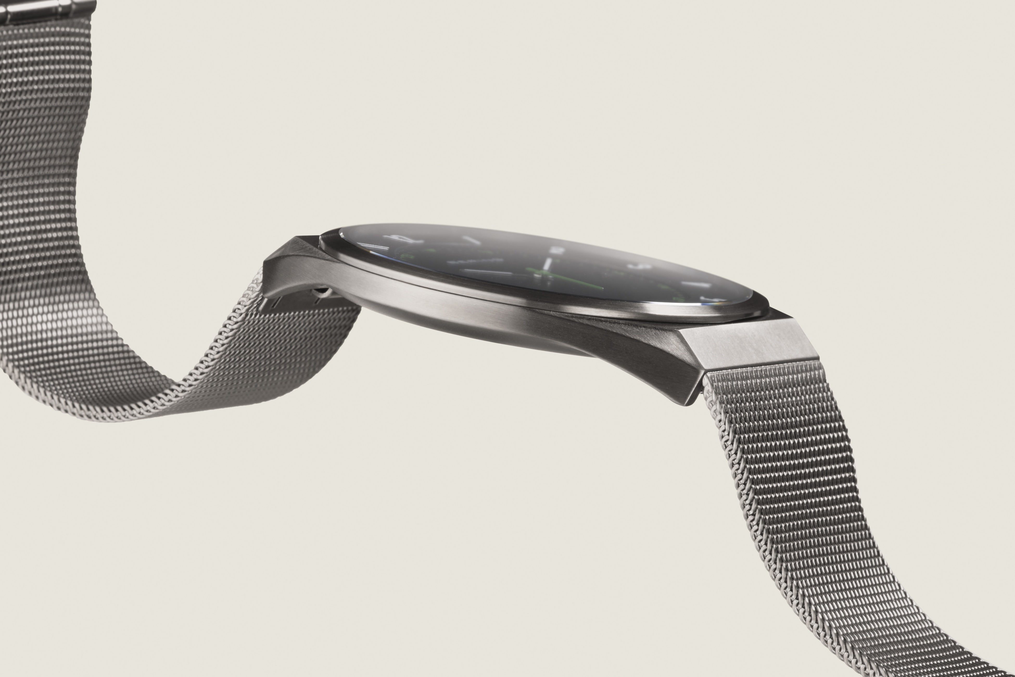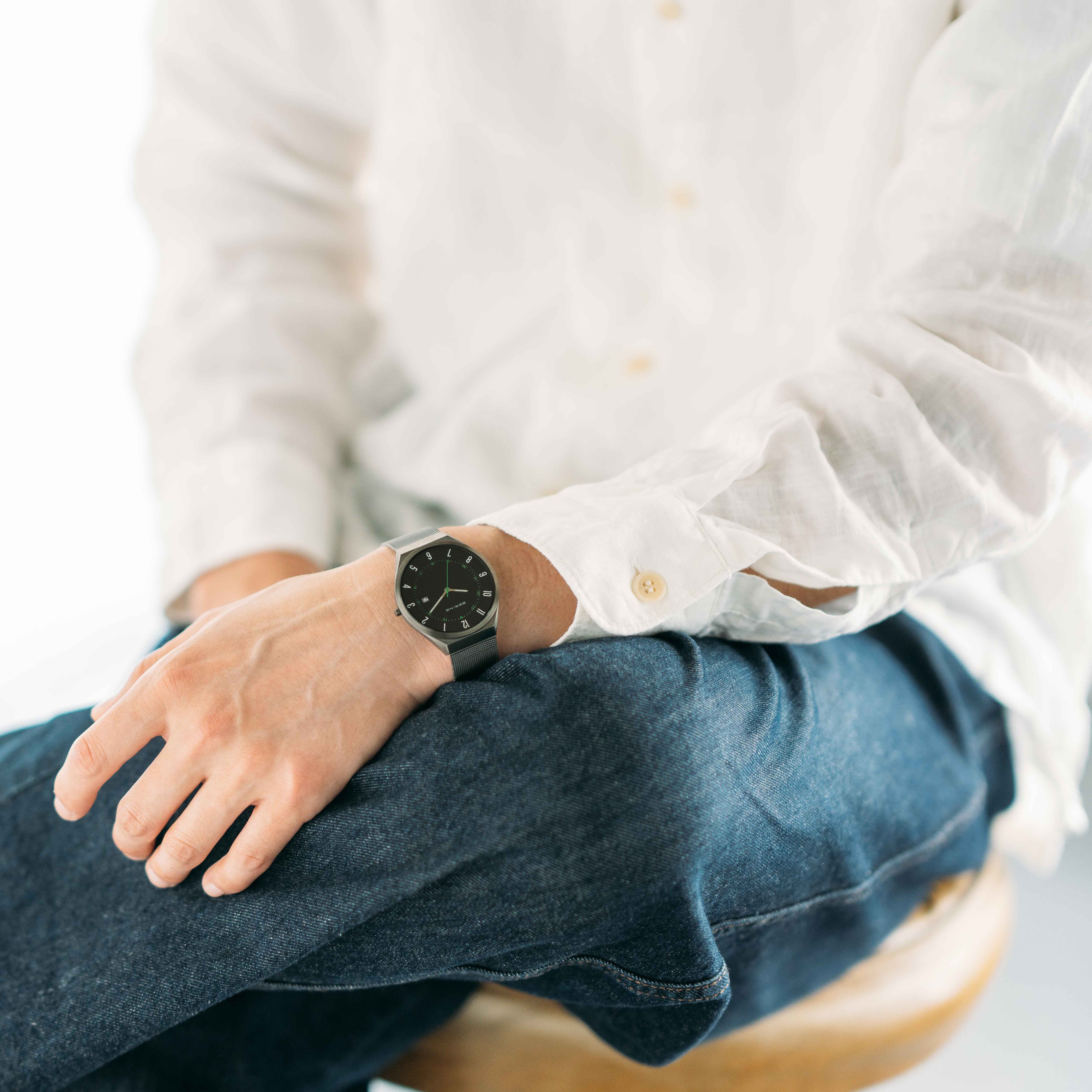 第2弾となる今作では澄んだ空気と静寂が広がる神秘的なカラーをポイントで配した、シンプルでクリーンなデザインです。薄さ6㎜のスリムケースは、手元に吸い付くようにフィットします。ソリッドなケースデザインと滑らかなメッシュストラップが高級感を演出しつつ、着用感の良さも兼ね備えています。